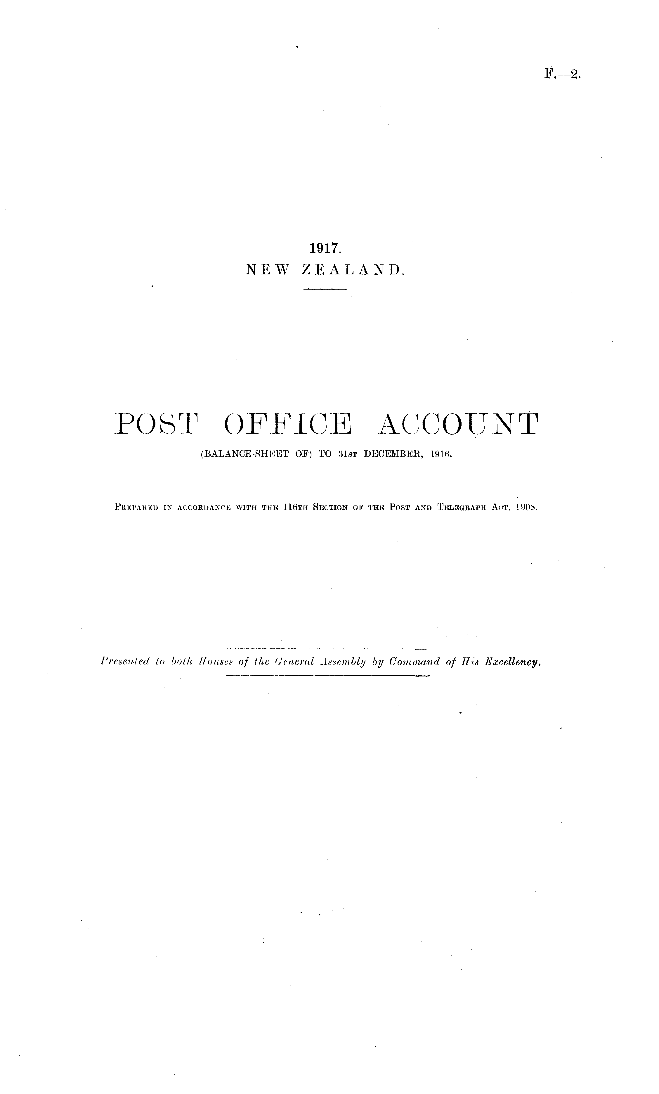 POST OFFICE ACCOUNT (BALANCE-SHEET OF) TO 31st DECEMBER, 1916. Prepared in accordance with the 116th Section of the Post and Telegraph Act, 1908.
