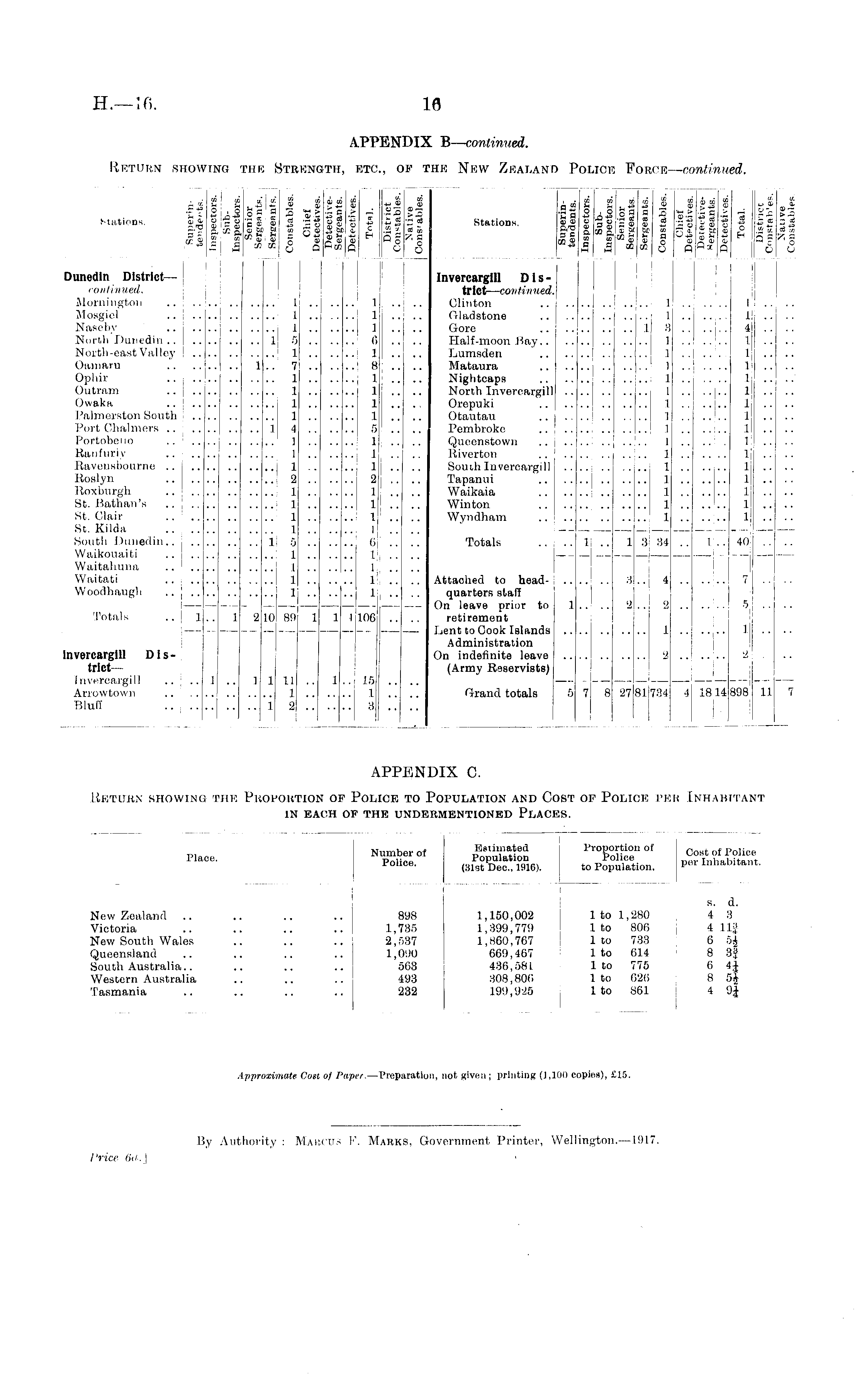 APPENDIX B— continued. Return showing the Strength, etc., of the New Zealand Police Force— continued.