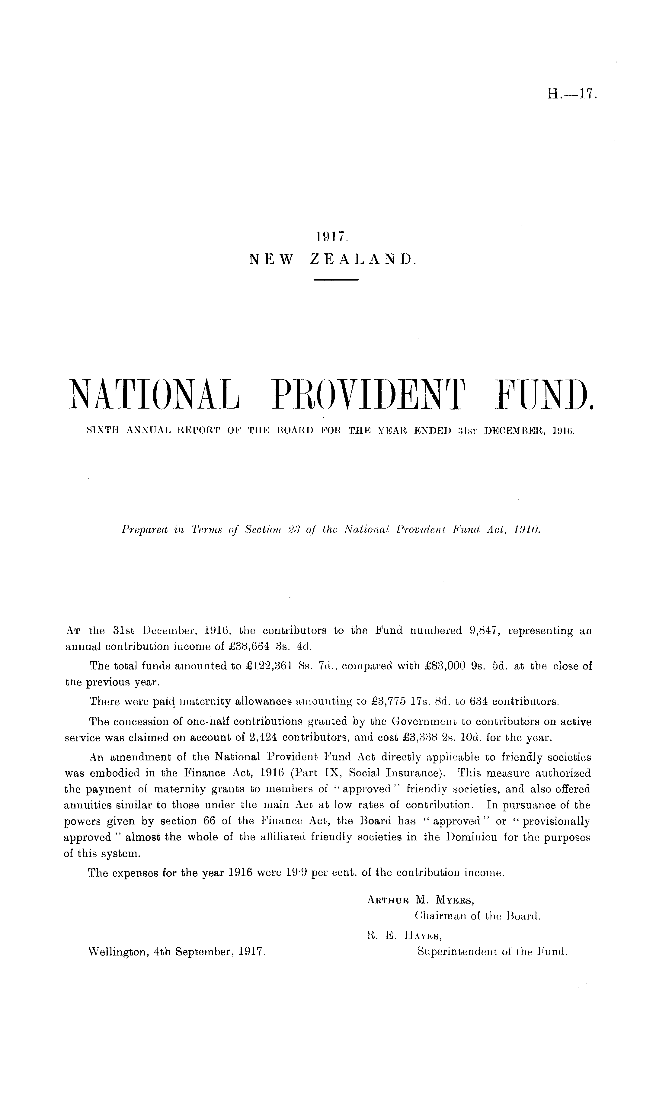 NATIONAL PROVIDENT FUND. SIXTH ANNUAL REPORT OF THE BOARD FOR THE YEAR ENDED 31st DECEMBER, 1916.