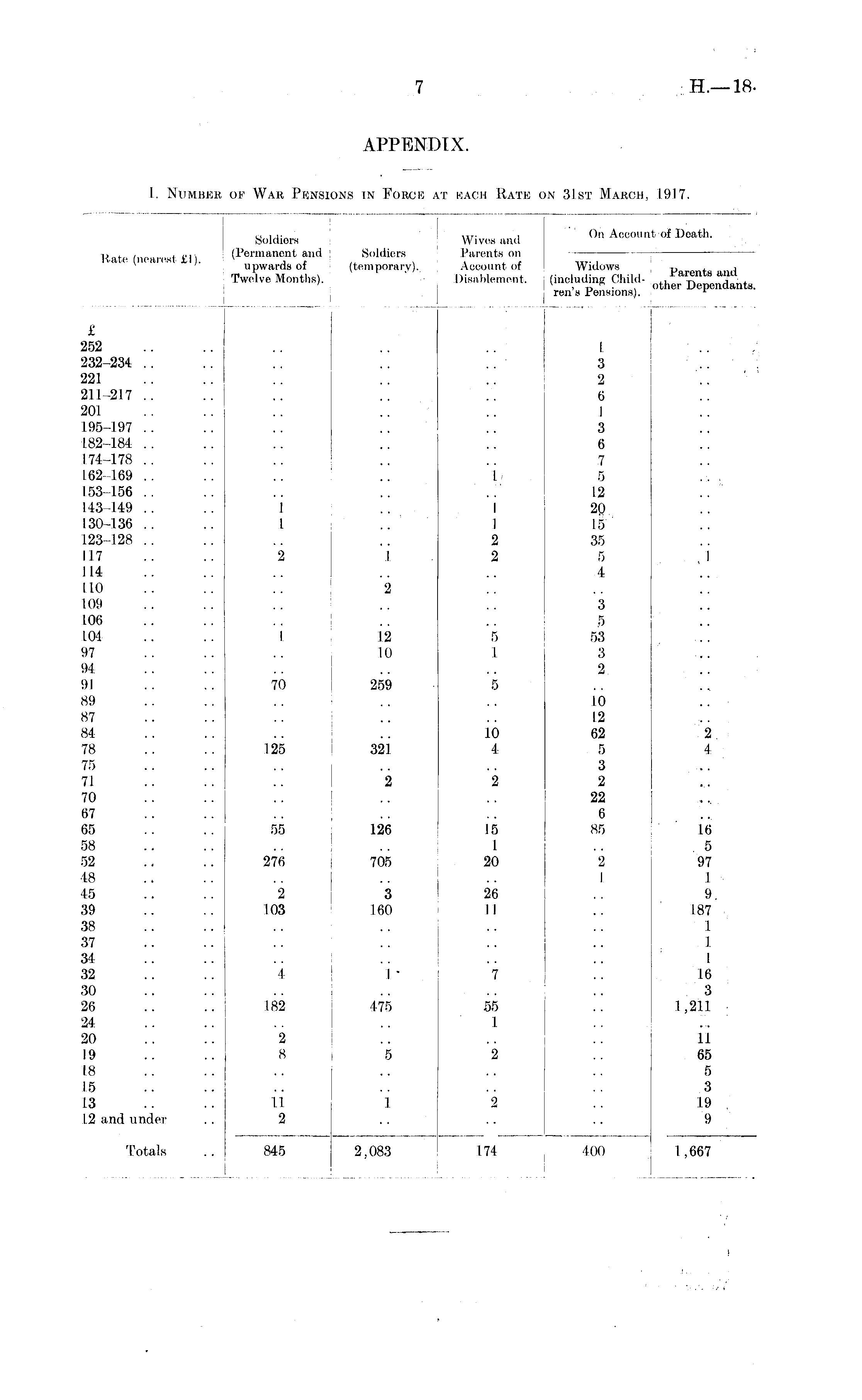 I. Number of War Pensions in Force at each Rate on 31st March, 1917.