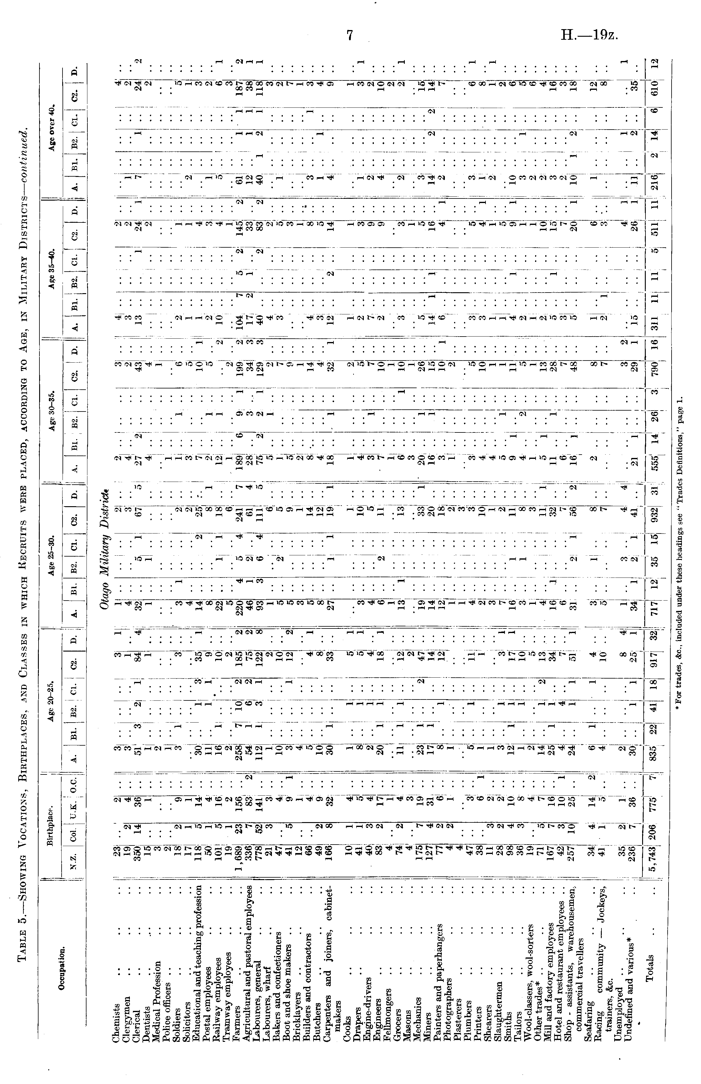 Table 5.—Showing Vocations, Birthplaces, and Classes in which Recruits were placed, according to Age, in Military Districts— continued.