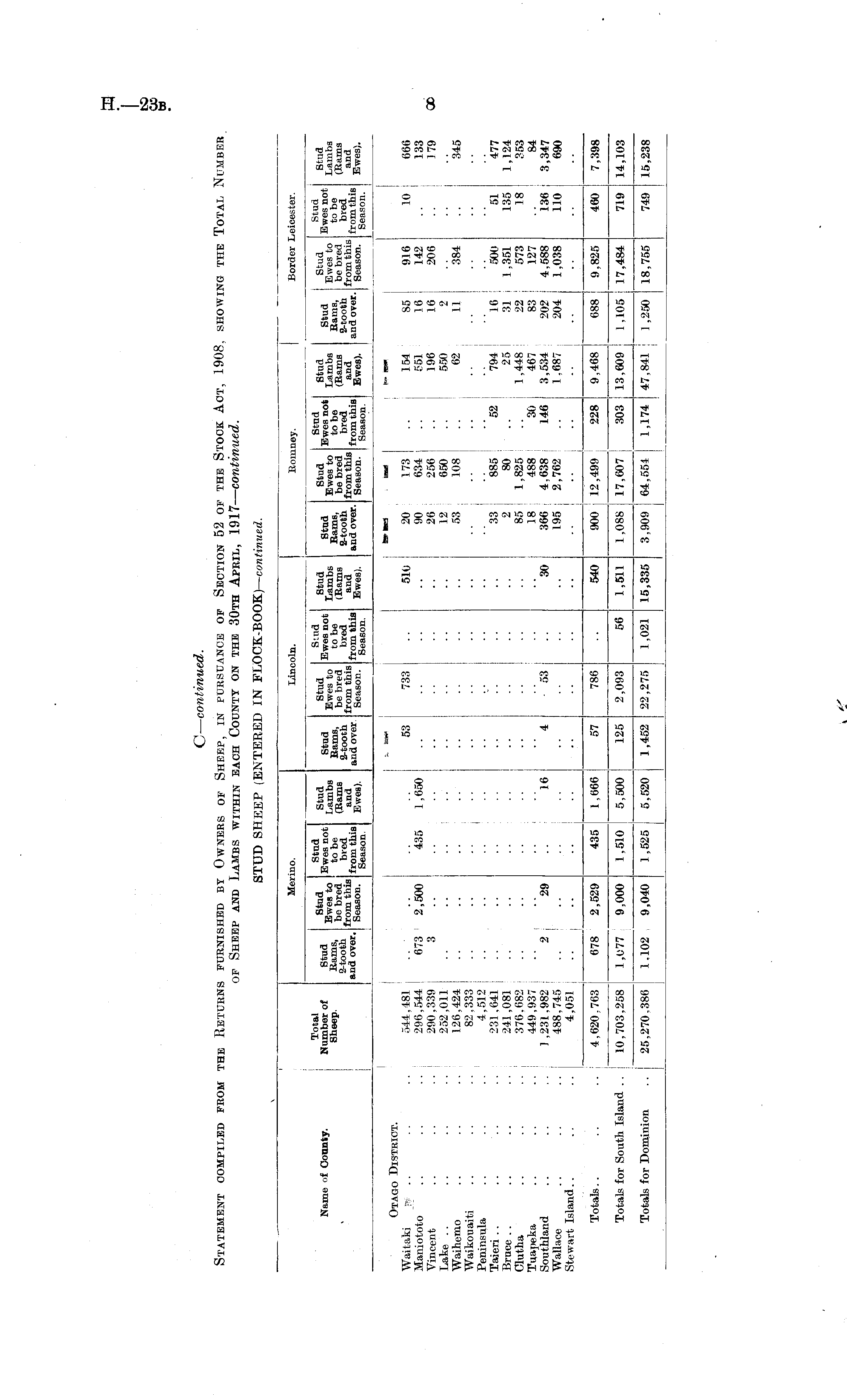 C— continued. Statement compiled from the Returns furnished by Owners of Sheep, in pursuance of Section 52 of the Stock Act, 1908, showing the Total Number of Sheep and Lambs within each County on the 30th April, 1917— continued. STUD SHEEP (ENTERED IN FLOCK-BOOK)— continued.