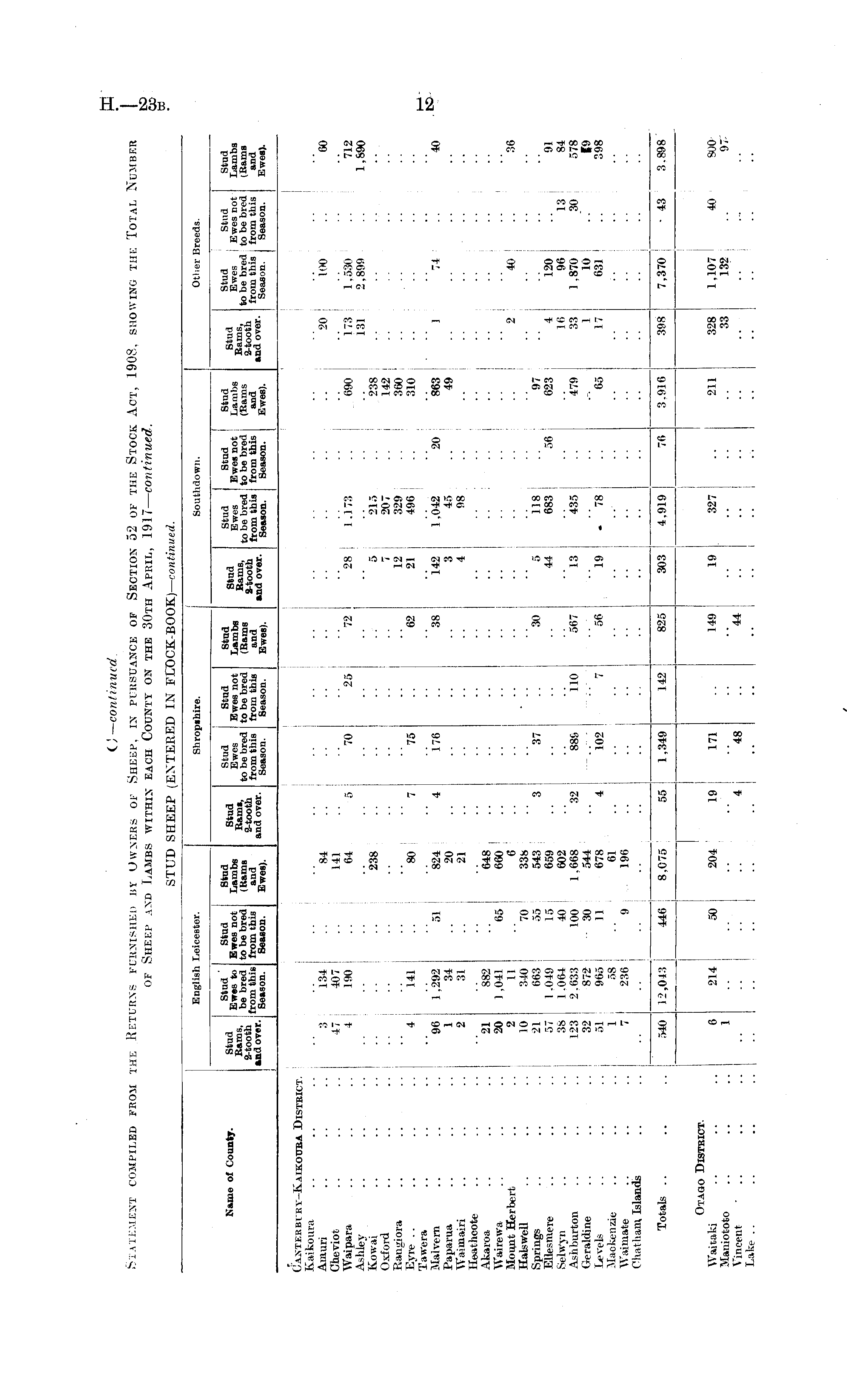 C— continued Statement compiled from the Returns furnished by Owners of Sheep, in pursuance of Section 52 of the Stock Act, 1908, showing the Total Number of Sheep and Lambs within each County on the 30th April, 1917— continued. STUD SHEEP (ENTERED IN FLOCK-BOOK)— continued.