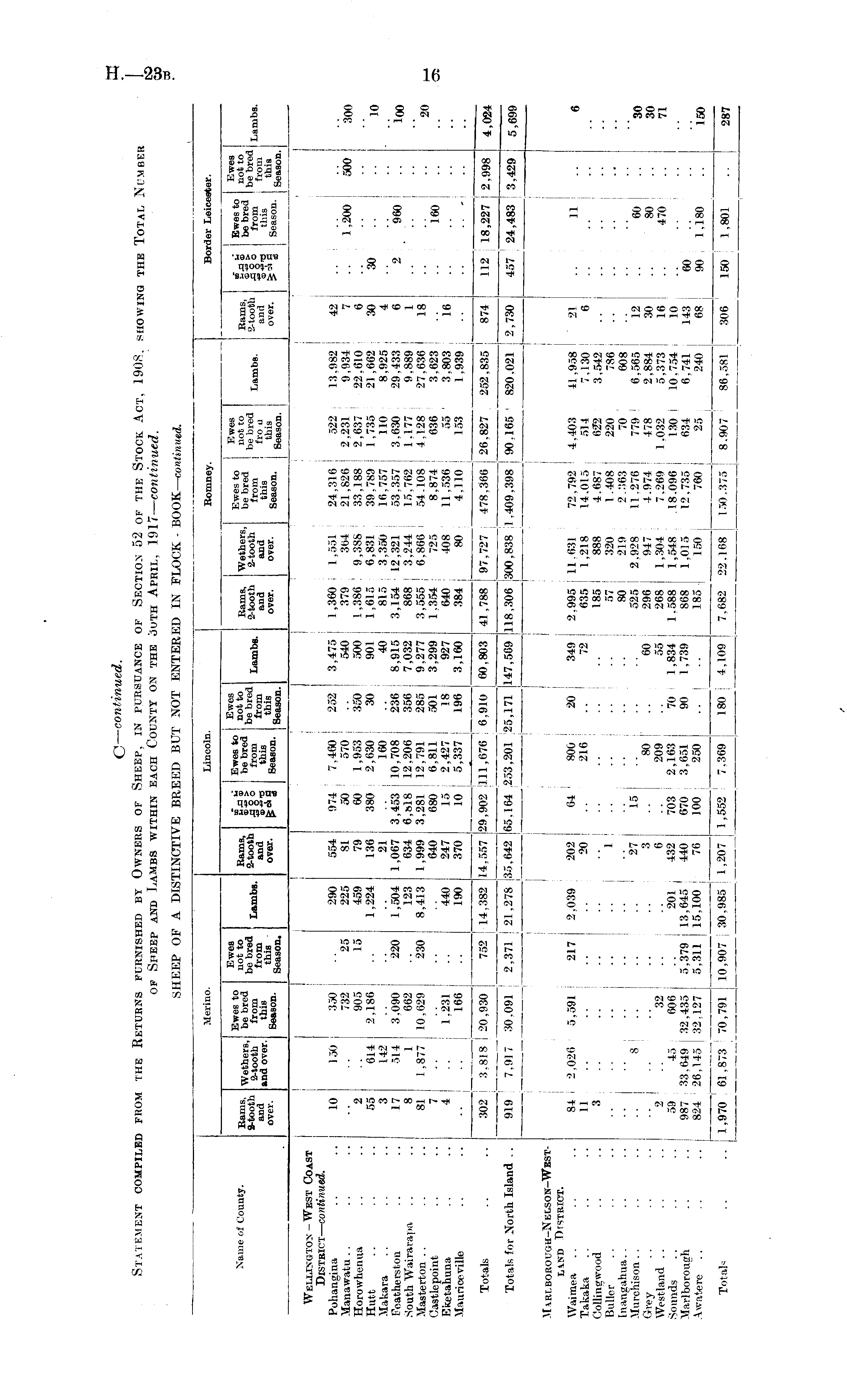 C— continued. Statement compiled from the Returns furnished by Owners of Sheep, in pursuance of Section 52 of the Stock Act, 1908, showing the Total Number of Sheep and Lambs within each County on the 30th April, 1917— continued. SHEEP OF A DISTINCTIVE BREED BUT NOT ENTERED IN FLOCK- BOOK— continued.