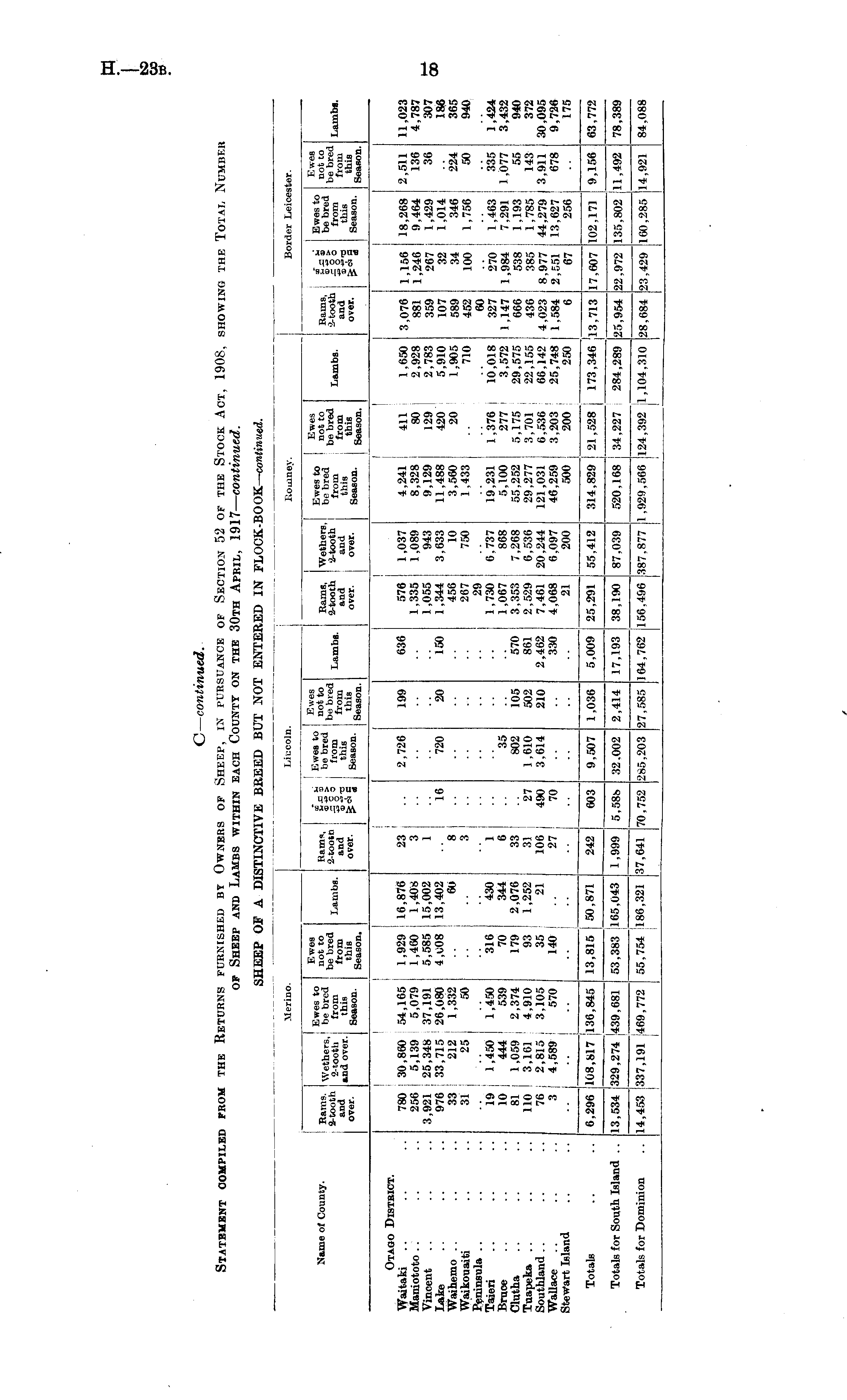 C— continued. Statement compiled from the Returns furnished by Owners of Sheep, in pursuance of Section 52 of the Stock Act, 1908, showing the Total, Number of Sheep and Lambs within each County on the 30th April, 1917— continued. SHEEP OF A DISTINCTIVE BREED BUT NOT ENTERED IN FLOCK-BOOK— continued.