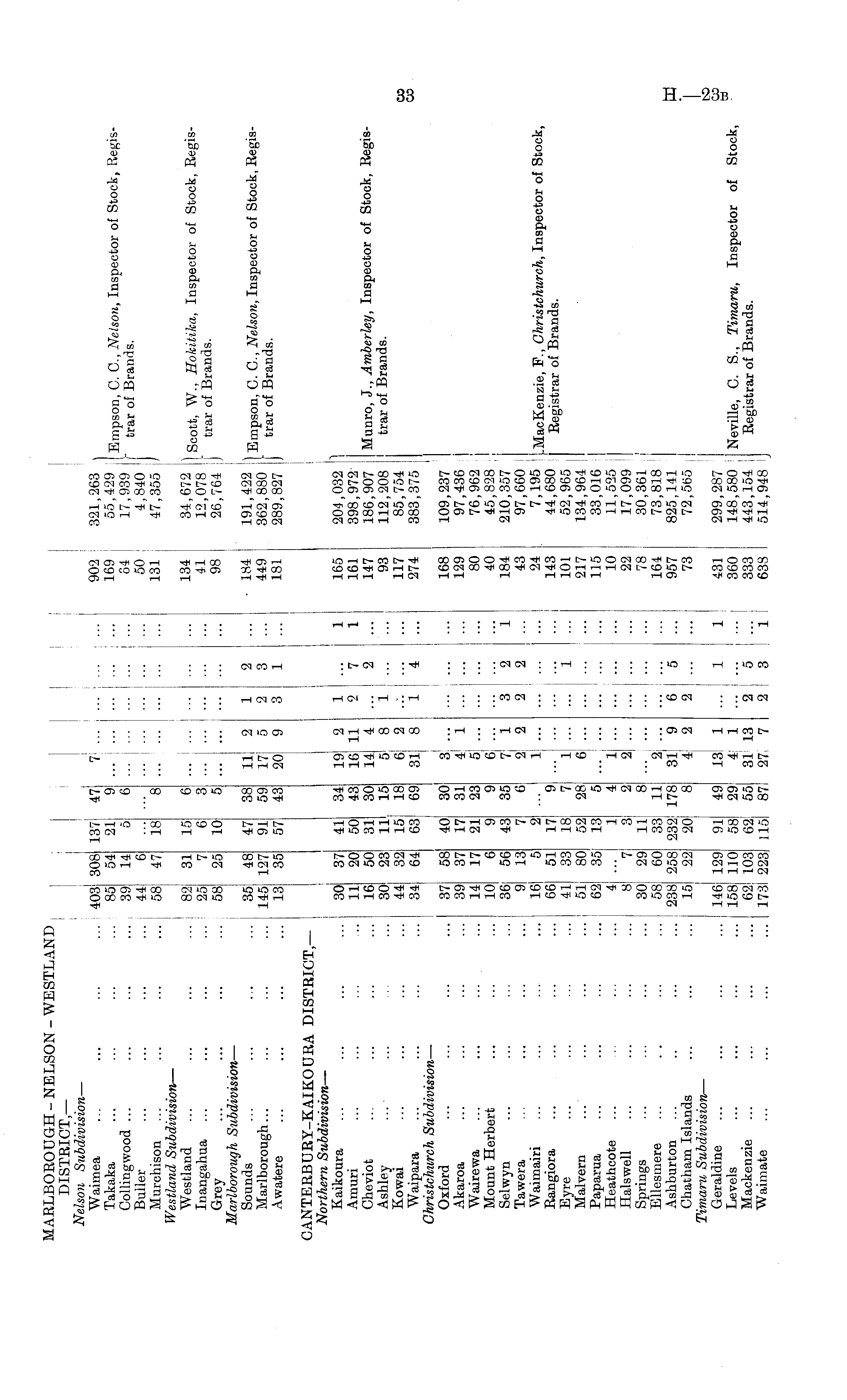 IVlA-ttU-DUttU U Hor-CL - IN-El-LlGUlN - VVH1DXUAIN XJ DISTEICT — Nelson Subdivision — Waimea Takaka ... ... Collingwood ... Buller Murchison Westland Subdivision — Westland Inangahua Grey Marlborough Subdivision — Sounds Marlborough... Awatere 403 85 39 44 58 82 25 58 308 54 14 6 47 31 25 137 21 5 18 15 6 10 47 9 6 8 7 ... ... ... 902 169 34 50 131 134 41 98 321,263 \\ 55,429 [ B m p Son) c. O, Nelson, Inspector of Stock, Regis17,939 \f trar of Brands. 4,840 47,365 . 6 3 5 ?o'a3q I) Scott, W., Hokitika, Inspector of Stock, Eegis- £'«, M trar of Brands. 26,764 J 35 145 13 48 127 35 47 91 57 38 59 43 11 17 20 2 5 9 1 2 3 2 3 1 ■ 184 449 181 oci'oon 1 Empson, C. O, Nelson, Inspector of Stock, Eegis289;82? [ *- of Brands. CANTEEBUEY-KAIKOURA DISTRICT — Northern Subdivision — Kaikoura Amuri Cheviot Ashley Kowai Waipara Christchurch Subdivision — Oxford Akaroa Wairewa Mount Herbert Selwyn Tawera Waimairi Rangiora Eyre Malvern ... ... ... Paparua Heathcote Halswell Springs EUesmere Ashburton ... .. ... ... Chatham Islands Timaru Subdivision — Geraldine Levels Mackenzie Waimate 30 11 16 30 44 34 37 39 14 10 36 9 16 66 41 51 62 4 8 30 58 238 15 37 20 50 23 32 64 58 37 17 6 56 13 51 33 80 35 41 50 31 11. 15 63 1 40 17 21 9 43 7 2 17 18 52 13 1 3 11 33 232 20 34 43 30 15 18 69 30! 31 23 9 35 G 19 2 16 11 14 4 5. 8 6 2 31 8 3 ... 4 1 5 ... 6 ... 7 1 2 2 1 ... '"l ... 6 ... 1 ... 2 7 2 1 ... "{ "i ... 3 2 2 2 1 1 1 165 161 147 93 117 274 168 129 80 40 184 43 24 143 101 217 115 10 22 78 164 957 73 204,032 398,972 186,907 Munro, J., Amberley, Inspector of Stock, Eegis112, 208 trar of Brands. 85,754 383,375 109,237 97,436 76,962 45,828 210,357 97,660 7,195 F., Christchurch, Inspector of Stock, 44,680 Registrar of Brands. 52,965 134,964 33,016 11,525 17,099 30,361 73,818 825,141 72,565 299,287 148,580 Neville, C. S., Timaru, Inspector of Stock, 443,154 : Registrar of Brands. 514,948 I. 7 29 60 258 22 9 7 28 5 4 2 8 11 178 8 i;:; ... I ... "i 146 158 62! 173: 129 110 103 223 91 58 62 115 49 29 55 87 2 ... 31' 9 4 2 13 1 1 4 1 31 13 27. 7 "6 5 2 ... 1 1 431 360 333 638 '2 I "5 2 I 3 i
