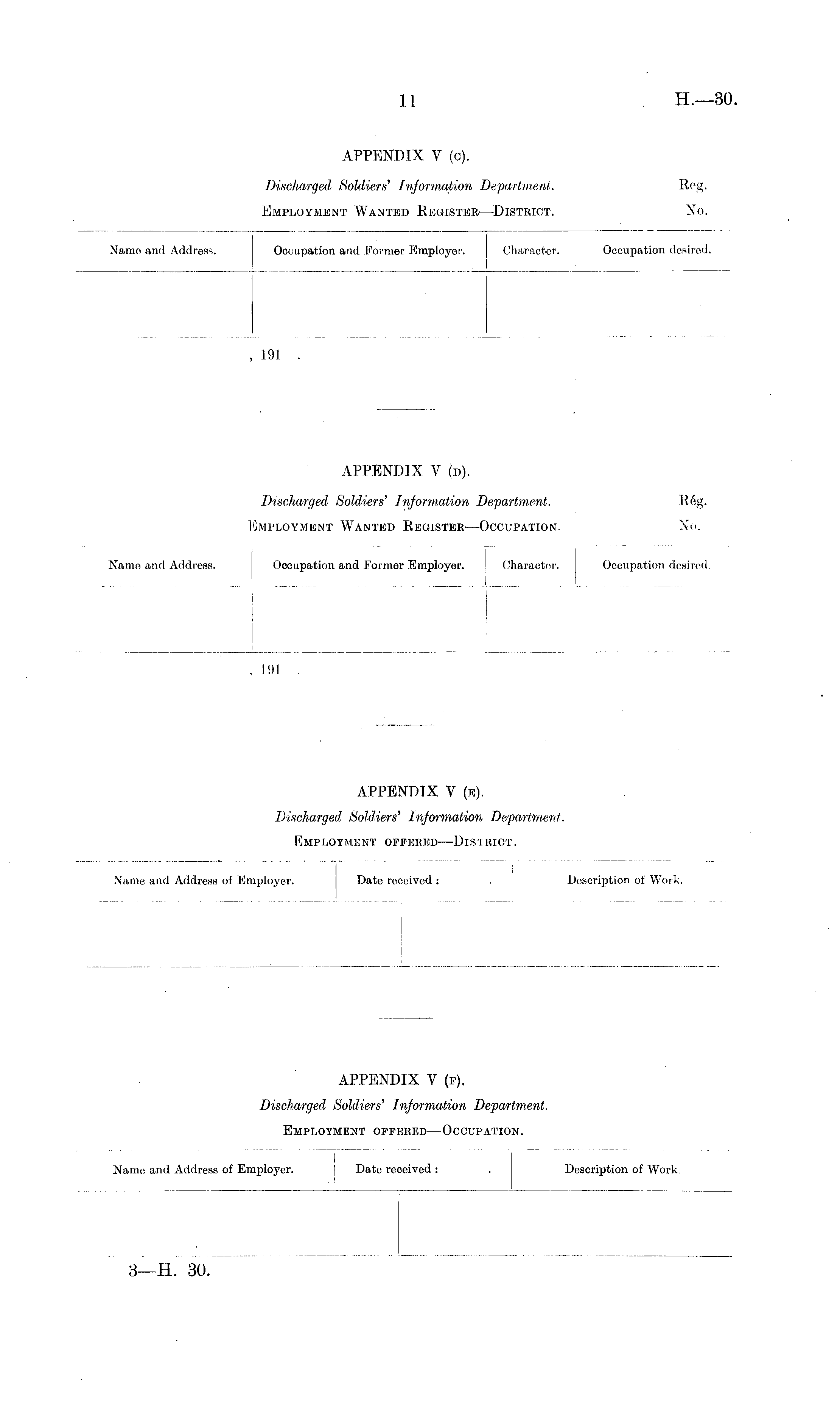 APPENDIX V (f). Discharged Soldiers' Information Department. Employment offered —Occupation.