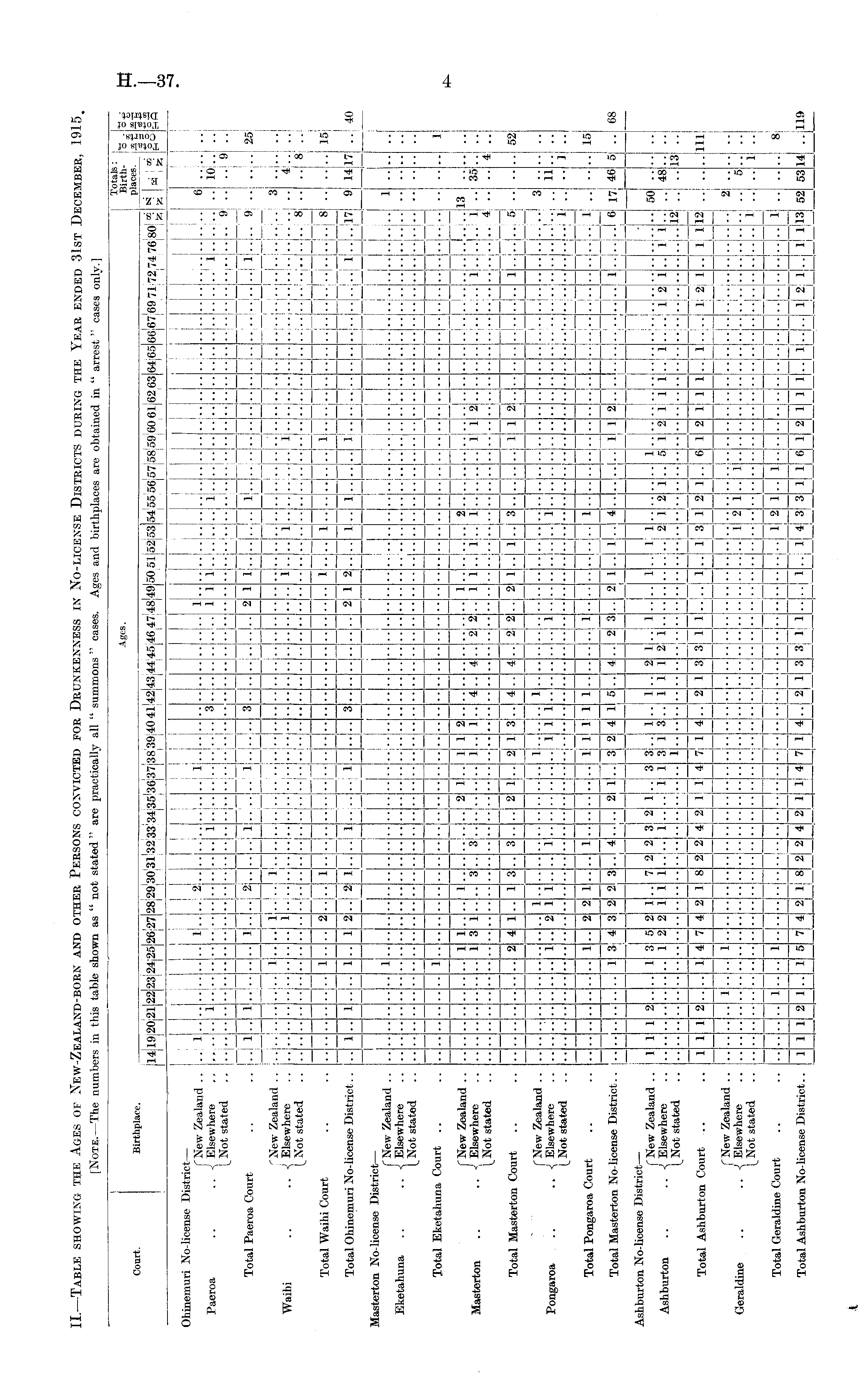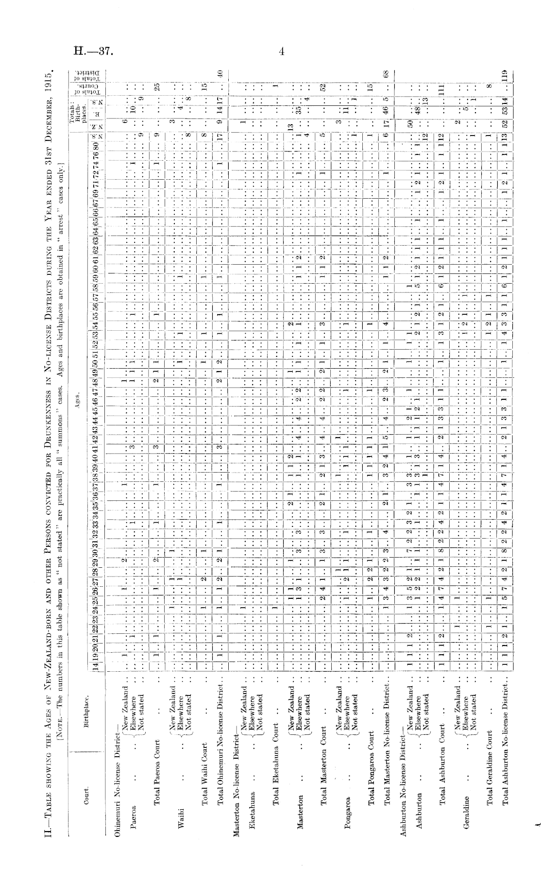 OTE. —The numbers in this tal le sl town as not state( are practical ly a: summons ' eases. .ges and birthplaces are obtained in " arrest " cases only.] Court. Birthplace. Ages. Totals: j Birth- IS,- o« places ._ *T -i-r; 14191 120: J212223 26l27 282930 i 31 l 3233 3435 ! 3637.38 39140 4l' I I I I I 1 : I I I I I i 42 43 44 45 I 46 i7:48! 49 |50 5152j53 54 55 56:57 58 59 60 61 I I ' 62 63 64 65 66 67 69 7172 74 76 80 ' A - s - x I | IS rC ■'■ es - hi - II I I I ! :::::::::: . 3 ; 8 .. 8 .. .. 1 .. ..17 9 1 13 1 1 .. 4 .. Ohinemuri No-license District — ['New Zealand .. Paeroa .. .. -; Elsewhere LNot stated .. !••■ ! i J .. 2 .. i .. l ■ 3 1 1 I i '.'. •• I 6 io 25 ■■ ■■ '■ 9 ■Ill ..ii •• I I I H .... . . 2 .... I ..ll - _ - •• - •• - " •• - •• -: •• 1 •' - •• - ' '• - •• - '■ •• •• —' ■■ - -• .. Total Paeroa Court Tl .. :; 2 i I l.. ■■ ■• •■ ■ ■■ •• •• •■ ■• •■ •• •• •■ •■ -!— - HH 1.. - - - - - - - - - -M _ _ — - - - - H— H ("New Zealand .. Waihi .. .. < Elsewhere stated :::: 1 1 .... -- -. 3 i 1 ■ •1 4 ■■ -• •• ■■ S •• •• •' •• ■• •• •• - •• •• ■■ ■• ■• ■• '■ •I •■ •■ •• •■ •■ ■ • ■ •• •• " ■• •• •■ •• •• Total Waihi Court .. - 2 - - - 1 - -A — - — — — - - -' l - - 1 - ~ - - - 15 .. 40 Total Ohinemuri Jso-license District.. - 2 ■■ — •• - _ 1 - •• - l .. 1 ■■ - •• - •• - - •• - •• - •■ •• - - - ■• - ■• - •' ■' " 9 14 1 1 2 2 1 2 1 1 i|.. 17 ■ ■■ ■ ■• " '■ •• •• ■■ ■• ■■ •• " •• •• •■ ■• - - - - - '— - - i 1 -1 -. - _ - - - - - __ — - - - — I 1 - - - - I I 1 — Masterton No-license District — f New Zealand .. Eketahuna .. .. <j Elsewhere stated ■• •• .. 1 •• •• 1 r - ■ ■• •• ■■ •■: :■■ •• •• •• •• '" •• ••: :■• •• •■ •• "I •I ■1 •• •-, •• •1 " •• ■■ •I ■■ I" - - - — —] \— — - — I- 1 — — — -' — — \-\ — '-I — — - — — I I I — iTotal Eketahuna Court .. i 1 . i'' •• •• '■ •• ■■ ■■ •I •• •" ■■ •• •■ ■■ •■ •I ■I •• •• •I •I — - 1 3 - - - - - - ~ : - ■- - 21 lj _ -' — ■ New Zealand .. Masterton .. .. < Elsewhere Not stated i i 1 i 2 l 1 1 I 2 2 1 1 13 •■ 3 •• 3 •■ 4 4 2 1 1 1 2 "I l 35 •• .. '• •• ••I 4 Total Masterton Court ... — ■■ - •• - ■■ :- •■ H • •• — •• i4 - ■■ - 1 1 1 ■■ i 3 •• — 3 — -: ■■ -A r- •■ I2 - 1 - ■■ - - ■■ ~ 2 1 1 - " 3 - — 4 - 4 - I 2 I - 2 - ■ u •• r2 -' i U .. 1 • 3 - •• ■■ - ■■ - •• — •• - i •• - 1 2 •• — ■■ - 1 •' — •• — •• — •• ■ - I : " — •• - 1 5 .. 3 1 [[ 1 -- •• 52 fNew Zealand .. Pongaroa .. .. < Elsewhere (_ Not stated 2 1 -- .. 3 i 1 1 •■ 1 I 1 i 1 -• . . ... .1 11 •• " '■ •■ .... ] - •' • •• ■' •• •• • •• •• ■• •• ■ ■• .... •• •• •• •• •• •• •■ " •■ ■■ — - - H - - - 1 - - - — ~ l 1 - - - 1 .. 1 1 - - - - - -A -I — - — 15 Total Pongaroa Court 2 2 1 I - 1 1 I ...... 1 .. 1 6 17 50 1 .. 1 1 .. .. 12 .. 1 .. 1 112 .. 2 ........ 1 .. i 1 .. 1 .. 1 l|l3[ 52 •• ■• ■• ■• ■■ :■• •• •• •■ ■ •• •• ■• •• ■• •■ ■■ •• •• ■■ •■ " "I - - - 3 2 ■2 3 - -A r- -. .- - 3 - - - - - ] i 2 - -I - I I 46 Total Masterton No-license District.. 4 2 l 1 i I 5 i I 4 i I 2 i 2 . -.!1 ! 4 i : ' * ■AAi 17 I 5 | 68 '• •I •• •• \" \ •• •• •■ ■• M - - - - I— w ( - - - - — - - ,_ i_ -! Ashburton No-license District — ('New Zealand .. Ashburton .. .. < Elsewhere stated 5 2 2 2 i i 1 7 1 3 1 1 1 3 1 1 3 3 1 1 3 1 1 1 2 1 1 2 I •■ 1 2 1 1 5 i 2 1 i " l i 2| i i 50J 48 " •• ■■ 'I .... - 13 •■ •• ■■ ■■ •• •• •■ •• •• •• .... •■ ■' " - •• •• •• - •• •• Total Ashburton Court 1 I i 2 - 7 \* 4 2 I l ~ 4 7 1 4 4 - 2 1 3 3 ' 1 _ .. 1 3 .. .. I .. .. 1 ..14 1 2 _ i - 2 1 i hi 11 - i 111 1 •■ 1 a 6 •• •• — :-; - -A - - - -A 4 7 1 - - _ - __ - — - - - - _ i - i- -\ fNew Zealand .. Geraldine .. .. <{ Elsewhere [_ Not stated hi .. .... 2 2 1 1 5 " I I •• •• •• •• •■ • ■ .... •• ... - - " - •• .. •• ... •' •■ •' •• •• " •• " ..!.. ■■ •• 1 — \-i '— - - \— — - - - - M _ - - 11 - -, Total Geraldine Court 2 I 1 .. 1 2 8 ■• •■ •■ '• ■■ ■• ■■ ■■ .... •• ■' •• •■ •• •• ■■ •• •■ — 4 2 - H - H H — - _ 3 _ 3 1 1 6 i _ 2 1 1 i - - Total Ashburton No-license District.. 7 i s 2J 2 4 2 1 1 4 1 3 1 1 1 i 53 . -:119 I 14 _ i I. __ I I 1—1 — i I __ _ _ I I | I —