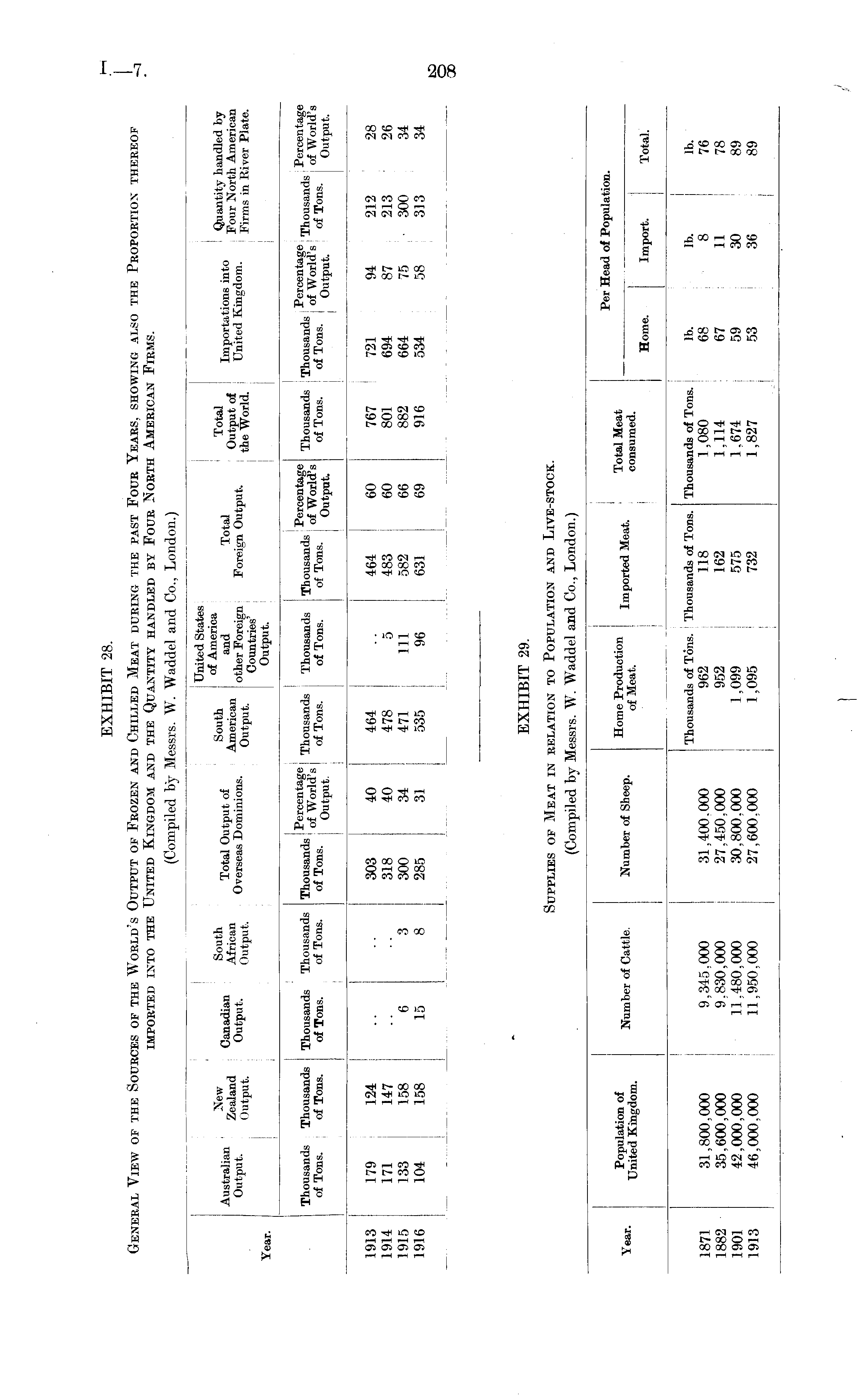 EXHIBIT 28. General View of the Sources of the World's Output of Frozen and Chilled Meat during the past Four Years, showing also the Proportion thereof imported into the united kingdom and the quantity handled by Four North American Firms.