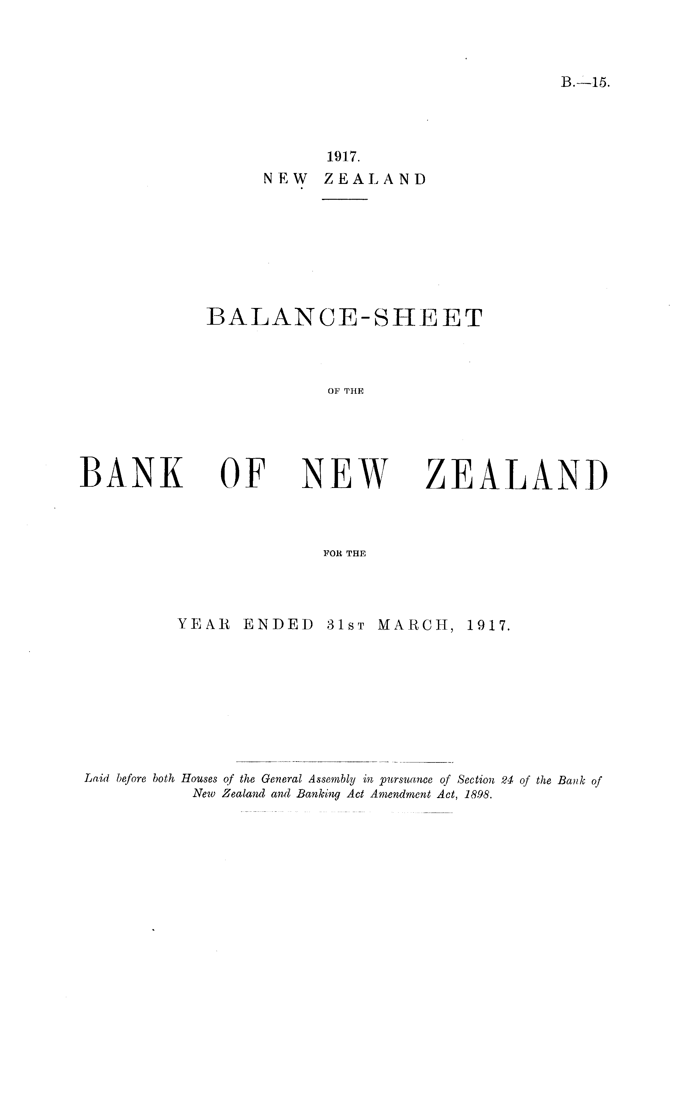 BALANCE-SHEET OF THE BANK OF NEW ZEALAND FOR THE YEAR ENDED 31st MARCH, 1917.