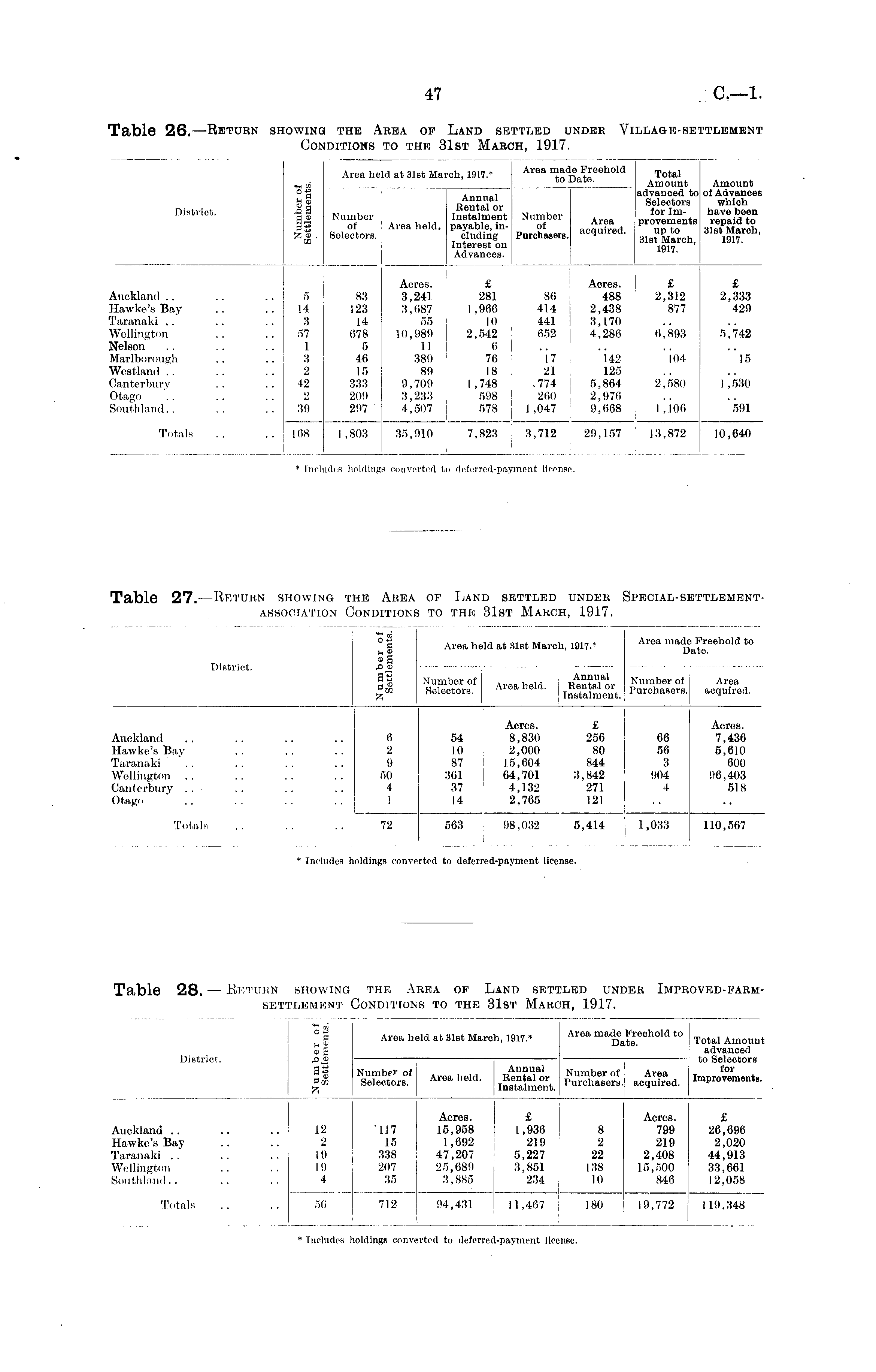 Table 26. —Return showing the Area of Land settled under Village-settlement Conditions to the 31st March, 1917.