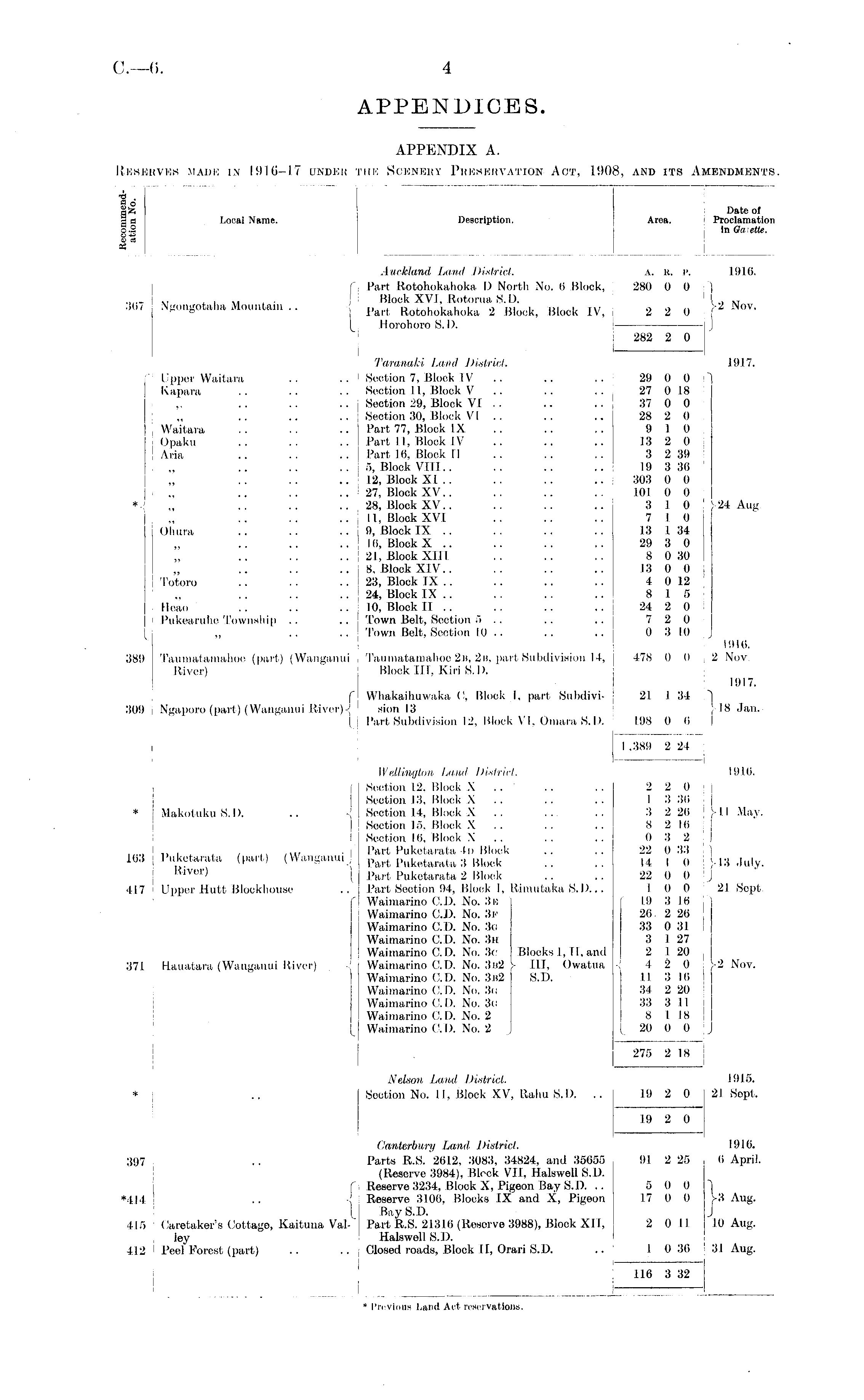 APPENDIX A. Reserves made in 1916-17 under the Scenery Preservation Act, 1908, and its Amendments.