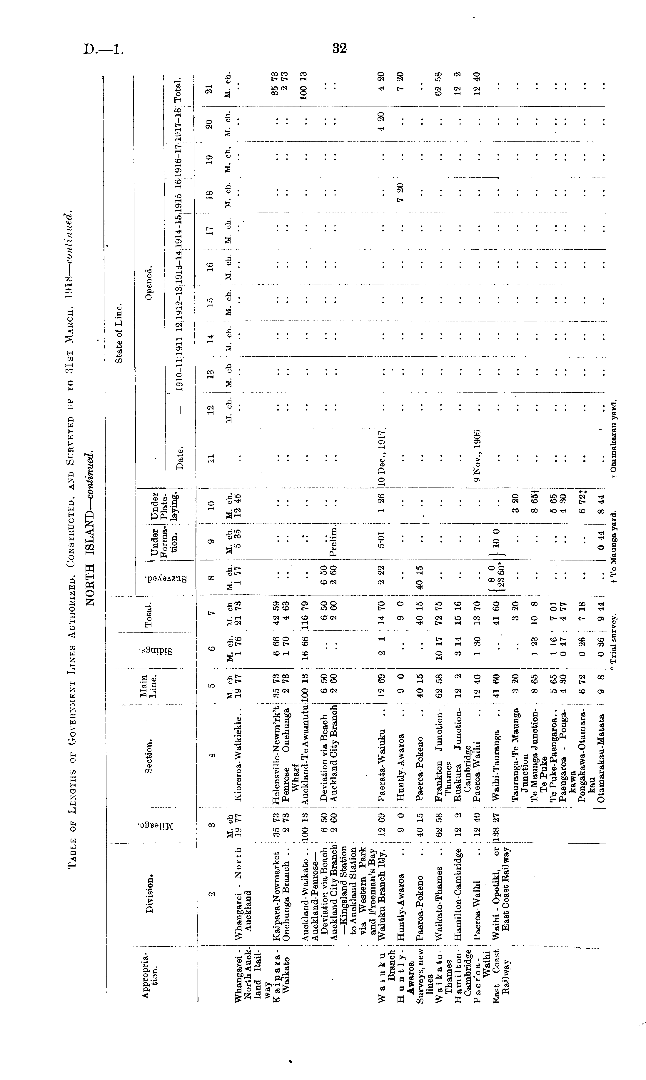 Table of Lengths of Government Lines Authorized, Constructed, and Surveyed up to 31st March, 1918— continued. NORTH ISLAND— continued.