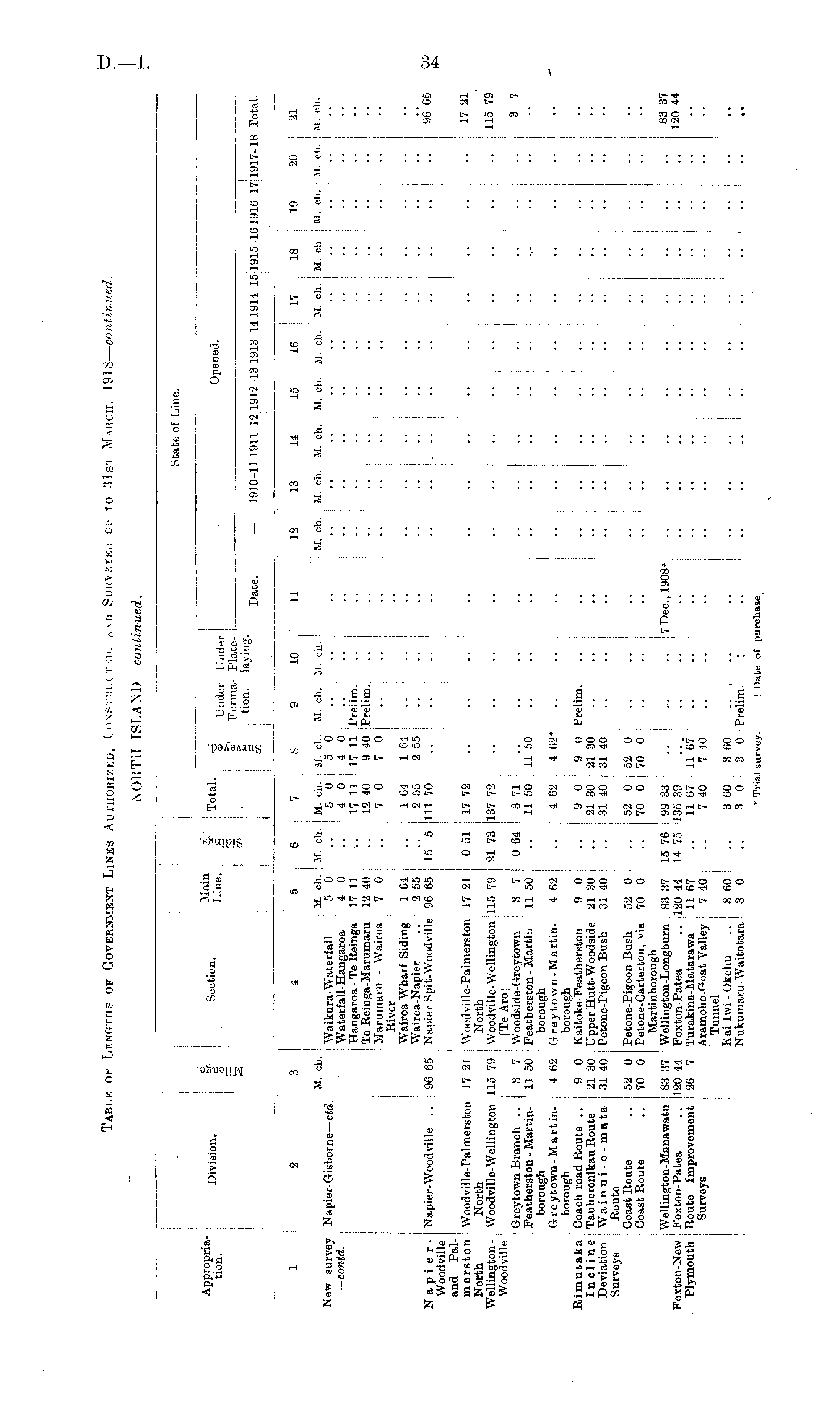 Table of Lengths of Government Lines Authorized, Constructed, and Surveyed up to 31st March, 1918— continued. NORTH ISLAND— continued.