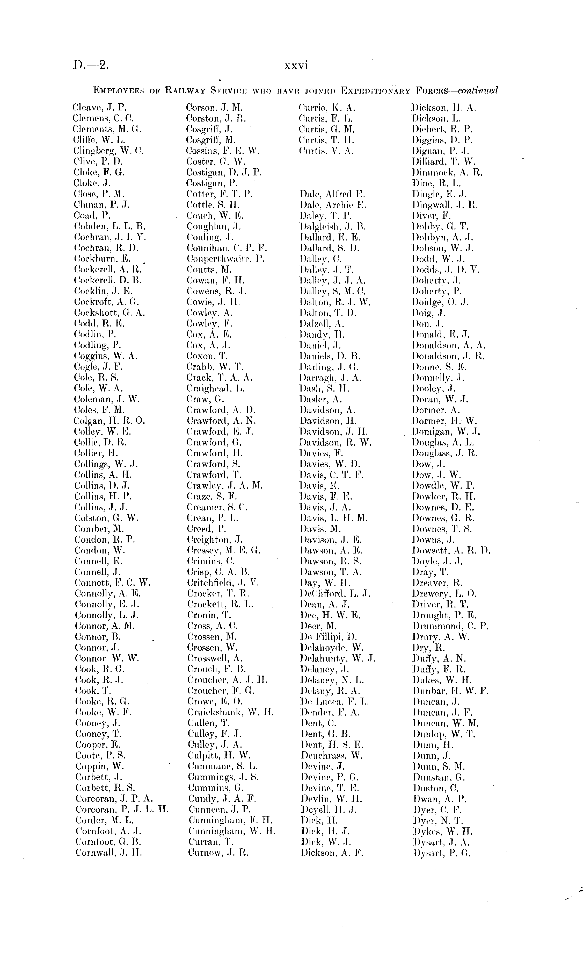 Employees of Railway Service who iiavr joined Expeditionary Forces — continued Cleave, J. P. Corson, J. M. Currie, K. A. Dickson, IT. A. Clemens, C. 0. Corston, J. R, Curtis, F. L. Dickson, B. Clements, M. G. Cosgriff, ,1. Curtis, G. M. Diebert, R. P. Clifl'e, W. B. Cosgriff, M. Curtis, T. H. Diggins, D. P. Clingberg, W. C. Cossins, F. E, W. Curtis. V. A. Dignan, P. .1. Olive, P. I). Coster, G. W. Dilliard, T. W. Cloke, F. G. Costigan, J). J. P. Dimmock, A. R. Cloke, J. Costigan, P. Dine, R. L. Close, P.M. Cotter, E. T. P. Dale, Alfred E. Dingle, E. ,1. Chimin, P. J. Cottle, 8. 11. Dale, Archie E. Dingwall, J. R. Ceiael, P. Couch, W. E. Daley, T. P. Diver, E. Cobden, L. Li B. Coughlan, .1. Dalgleish, .1. B. Dobby, G. T. Cochran, J. I, Y. Couling, J. Dallard, E. E. Dobbvn, A. .1. Cochran, R. D. Counihan, C. P. F. Dallard, 8. I). Dobson, W. J. Cockburn, E. Couperthwaite, P. Dalley, C. Dodd, W. J. Cockerell, A. R." Coutts, M. Dalley, J. T. Dodds, J. D. V. Ceickerell, D. B. Cowan, F. 11. Dalley, J. J. A. Doherty, J. Cocklin, J. E. Cowens, R. .1. Dalley, 8. M. 0. Doherty, P. Cockroft, A. G. Cowie, .1. 11. Dalto'n, R, J. W. De.ielge', (). ,1. Cockshott, G. A. Cowley, A. Daltein, T. I). Doig, .1. Codd, R. E. Cowley, F. Dalzell, A. Don, J. Cod I in, P. Cox, A. E. Dandy, H. Donald, E. J. Codling, P. Cox, A. J. Daniel, ,1. Donaldson, A. A. Coggins, W. A. Coxon, T. Daniels, D. B. Donaldson, .1. R. Cogle, J. F. Crabb, W. T. Darling, .1. G. Donne, 8. E. Cole, R. 8. Crack, T. A, A. Darragh, J. A. Donnelly, J. Cole, W. A. Craighead, B. Dash, S. H. Dooley, J. Coleman, J. W. Craw, G. Dasler, A. Doran, W. J. Coles, F. M. Crawford, A. D. Davidson, A. Dormer, A. Ceilgan, H. R. 0. Crawford, A. N. Davidson, 11. Dormer, H. W. Colley, W. E. Crawford, E. J. Davidson, J. IT. Domigan, W. J. Collie, D. R. Crawford, G. Davidson, R, W. Douglas, A. E. Collier, 11. Crawford, If. Davies, F. Douglass, J. R. Collings, W. J. Crawforel, 8. Davies, W. D. Dow, .1. Oeillins, A. 11. Crawford, T. Davis, 0. T. E. Dow, .1. W. Collins, D. J. Crawley, J. A. M. Davis, E. Dowdle, W. P. Collins, 11. P. Craze, 8. E. Davis, F. E. Dnwker, R. 11. Collins, .1. J. Creamer, 8. C. Davis, J. A. Downes, D. E. Colston, GKW. Crean, P. L. Davis, L. H. M. Downes, G. R. Comber, M. Creed, P. Davis, M. Downes, T. 8. Condon, R. P. Creighton, J. Davison, J. E. Downs,.). Condon, W. Cressey, M. E. G. Dawson, A. E. Dowsett, A. R. I). Conned!, E. Crimins, C. Dawson, R, S. Doyle, .1. .1. Connell, ,1. Crisp, C. A. B. Dawson, T. A. Dray, T. Connett, F. C. W. Critchfield, .1. V. Day, W. 11. Dreaver, R. Connolly, A. E. Crocker, T. R. DeClifiord, B. J. Drewery, B. 0. Connolly, E. J. Crockett, R. B. . Dean, A. J. Driver, R. T. Connolly, 8..). Cronin, T. Dee, H. W. E. Drought, P. E. Connor, A. M. Cross, A. C. Deer, M. Drummond, C. P. Connor, B. Crossen, M. De Fillipi, I). Drury, A. W. Connor, J. Crossen, W. Delahoyde, W. Dry, R, Connor W. W. Crosswell, A. Delahunty, W. J. Duffy, A, N. Cook, R. G. Crouch, F. B. Delaney, J. Duffy, F. R. Cook, R. .1. Croucher, A. J. IT. Delaney, N. L. Dukes, W. IT. Cook, T. Croucher, E. G. Delany, R, A. Dunbar, H. W. E. Cooke, R. G. Crowe, E. O. De Lucca, E. B. Duncan, .1. Cooke, W. E. Cruickshank, W. IT. Dender, F. A. Duncan, ,1. F. Cooney, .1. Cullen. T. Dent, C. Duncan, W. M. Cooney, T. Culley, P. .1. Dent, G. B. Diinlop, W. T. Cooper, E. Culley, J. A. Dent, 11. 8. E. Dunn, 11, Coote, P. 8. Culpitt, 11. W. Deuchrass, W. Dunn, J. Coppin, W. Cummane, S. B. Devine, .). Dunn, S. M. Corbett, J. Cummings, .1. 8. Devine, P. G. Dunstan, G. Corbett, R. 8. Cummins, G. Devine, T. E. Duston, C. Corcoran, J. P. A. Cundy, J. A. F. Devlin, W. H. Dwan, A. P. Corcoran, P. J. B. Tf. Cunneen, J. P. Deyell, 11. .1. Dyer, 0. E. Ceirder, M. L. Cunningham, F. IT. Dick, 11. Dyer, N. T. Cornfoot, A. J. Cunningham, W. 11. Dick, H. J. Dykes, W. IT. Cornfoot, G. B. Curran, T. Dick, W. .1. Dysart, J, A. Cornwall, .1. 11. Curnow, .1. R. Dickson, A. F. Dysart, P. G.