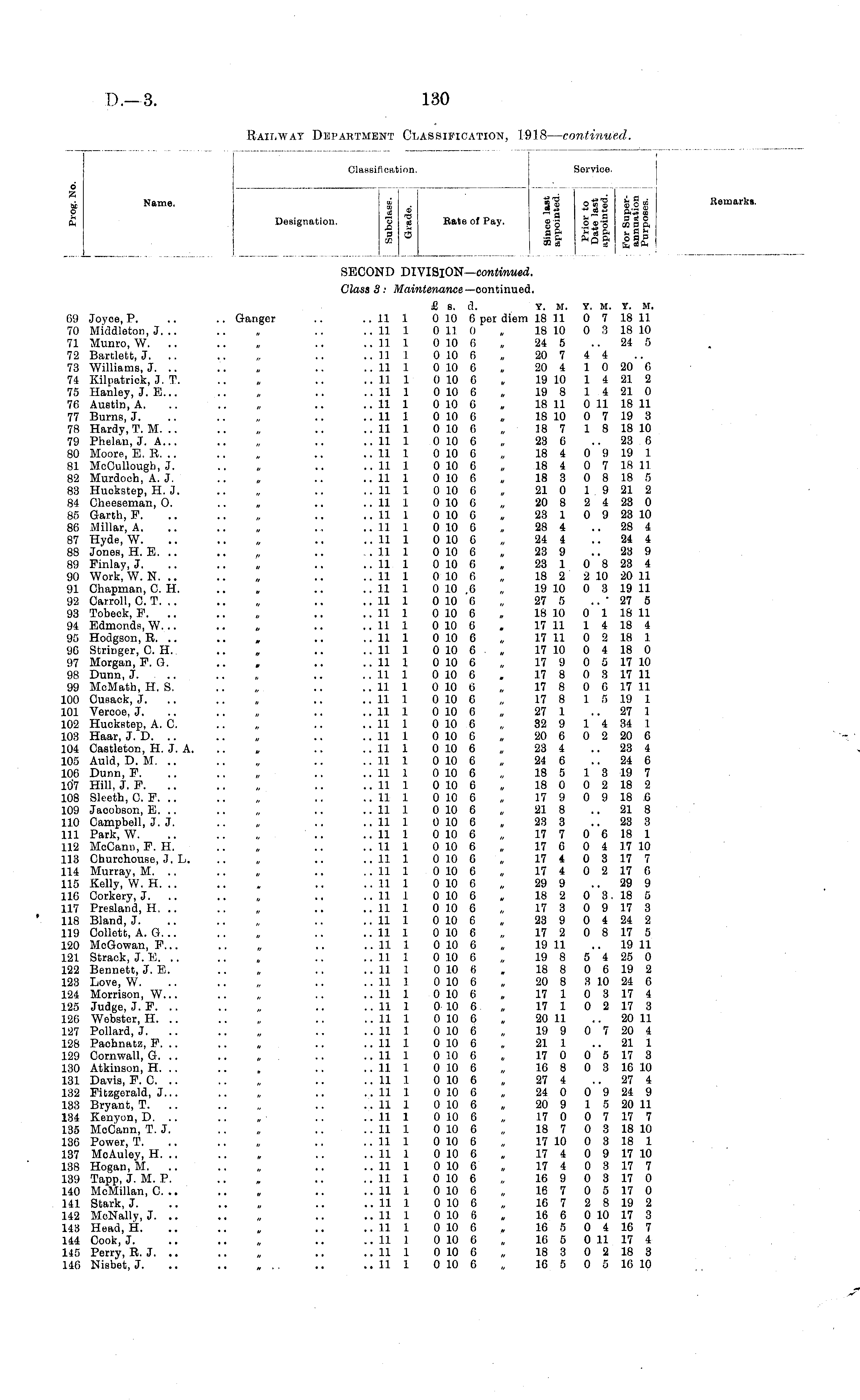 Railway Department Classification, 1918 — continued.