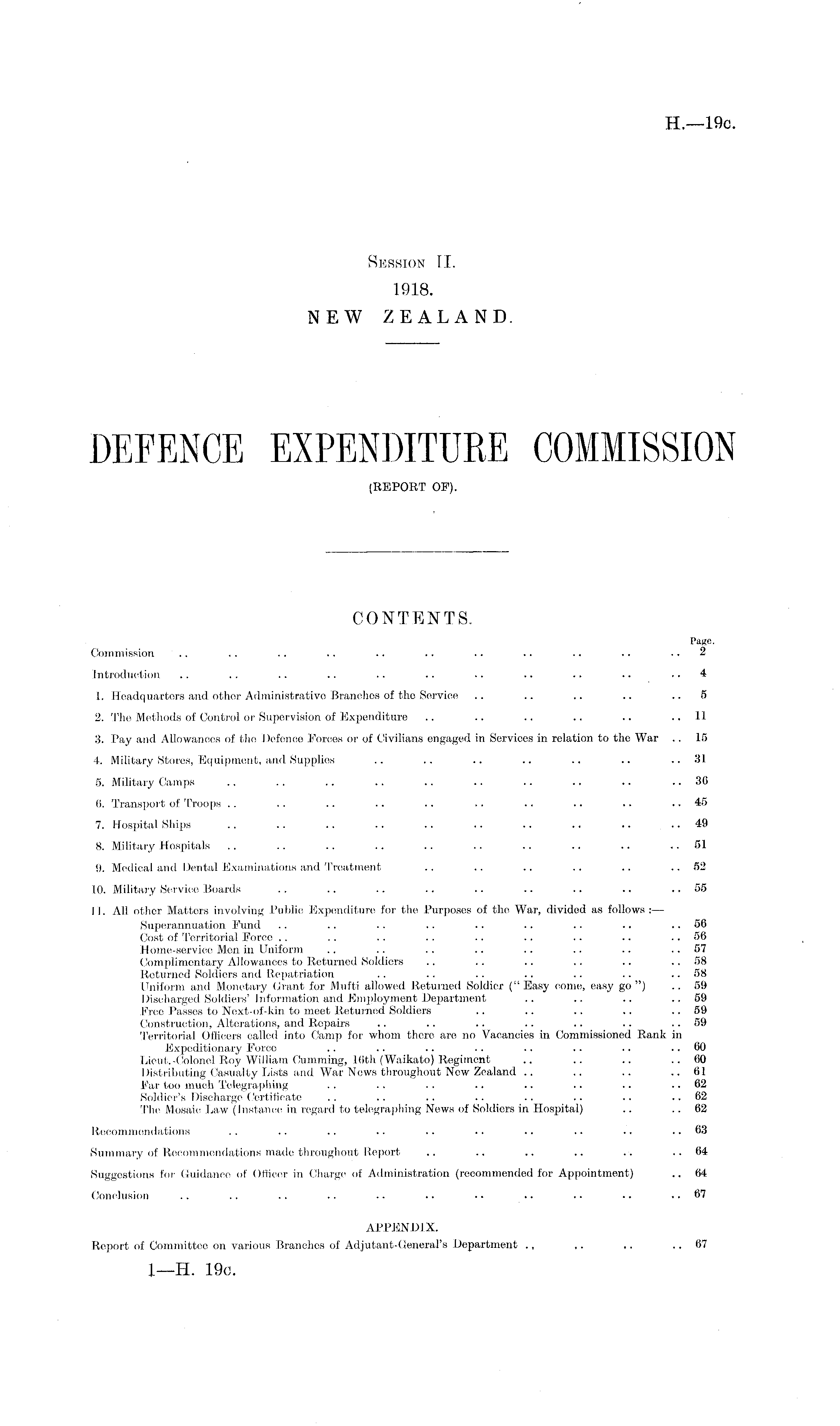 DEFENCE EXPENDITURE COMMISSION (REPORT OF).