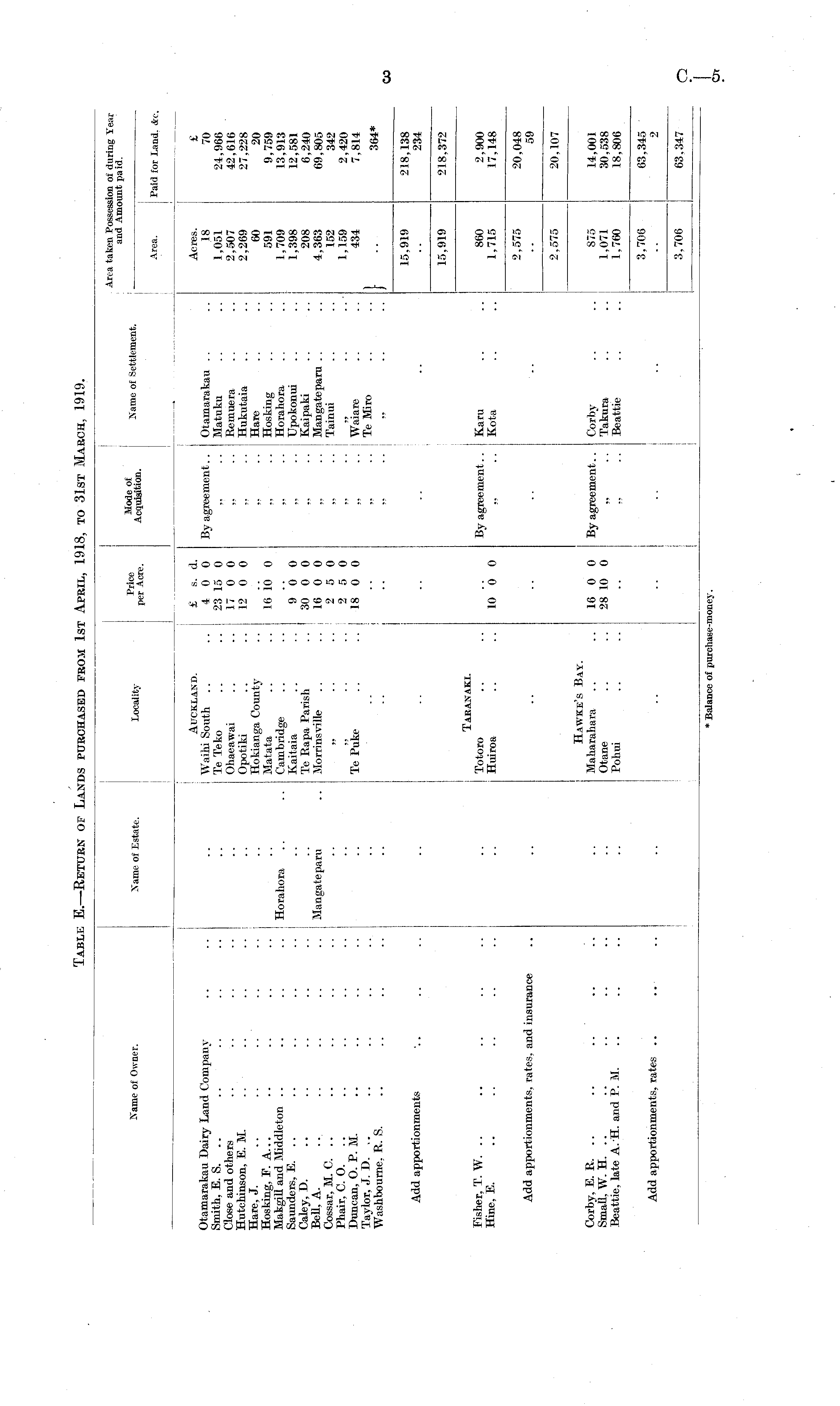 Table E.—Return of Lands purchased from 1st April, 1918, to 31st March, 1919.