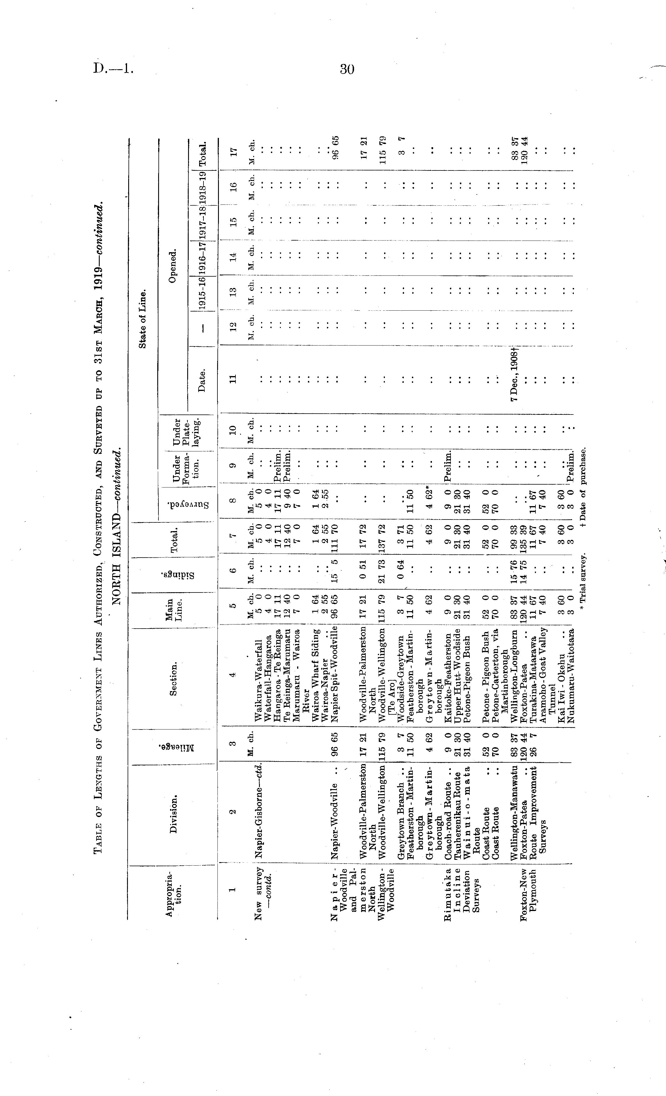 Table of Lengths of Government Lines Authorized, Constructed, and Surveyed up to 31st March, 1919— continued. NORTH ISLAND— continued.