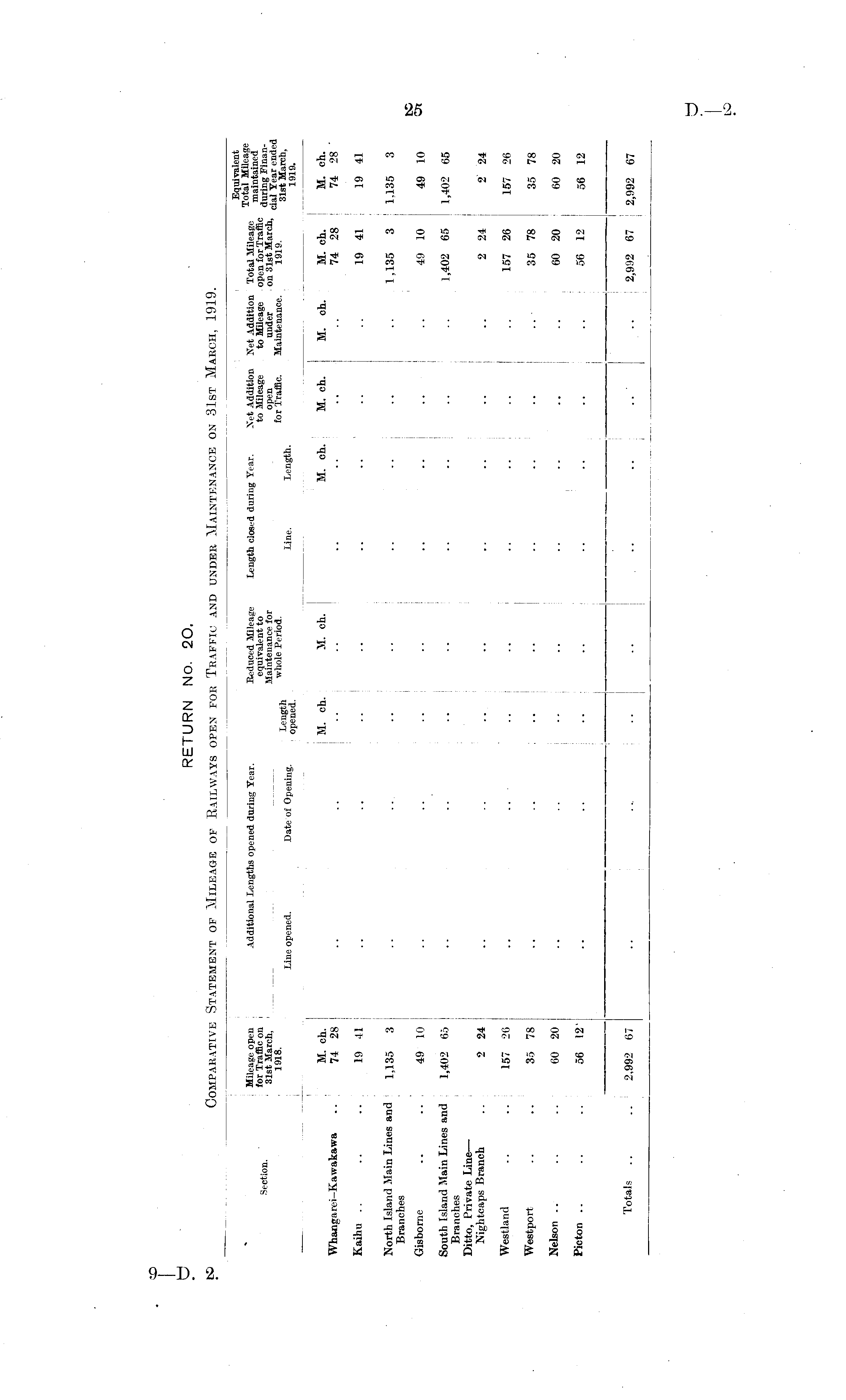 RETURN No. 20. Comparative Statement of Mileage of Railways open for Traffic and under Maintenance on 31st March, 1919.