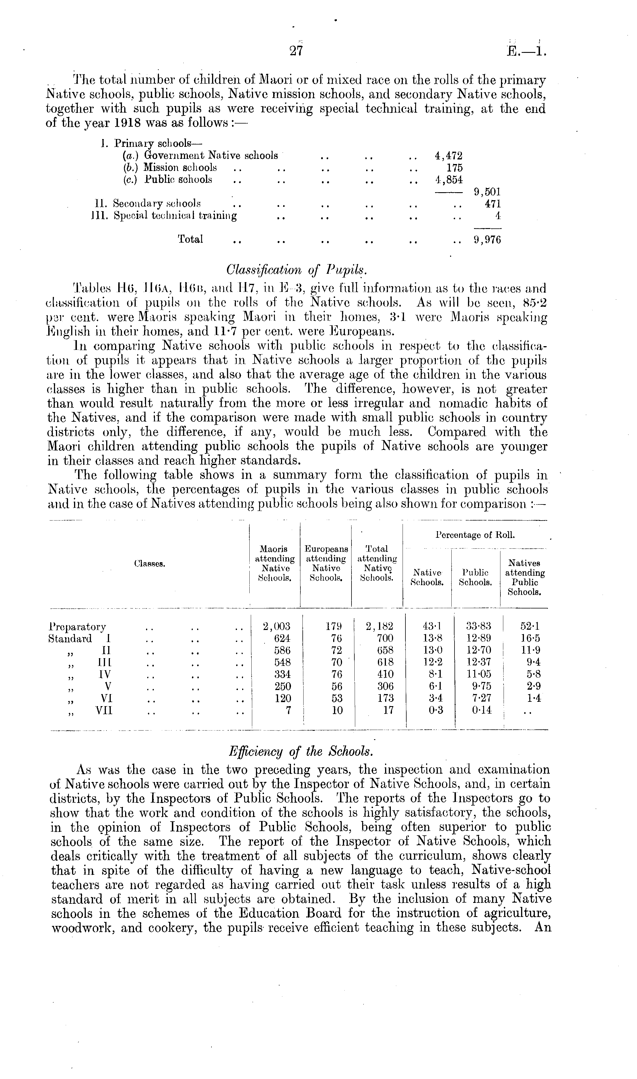 ("lasses. Maoris Europeans attending attending Native Native Schools. Schools. j Total attending Native Schools. Percentage of Roll. Natives Native Publio attending Schools. Schools. Publio Schools. Preparatory Standard J II „ III „ iv v VI „ VII 2,003 179 624 76 586 72 548 70 334 76 250 56 120 53 7 10 2,003 024 580 548 334 250 120 7 179 76 72 70 76 56 53 10 2,182 700 058 018 410 300 173 17 43*1 13*8 13*0 12*2 8*1 6*1 3*4 0*3 33*83 12*89 12*70 12*37 11*05 9*75 7*27 0*1.4 52*1 16*5 11*9 9*4 5*8 2*9 1*4