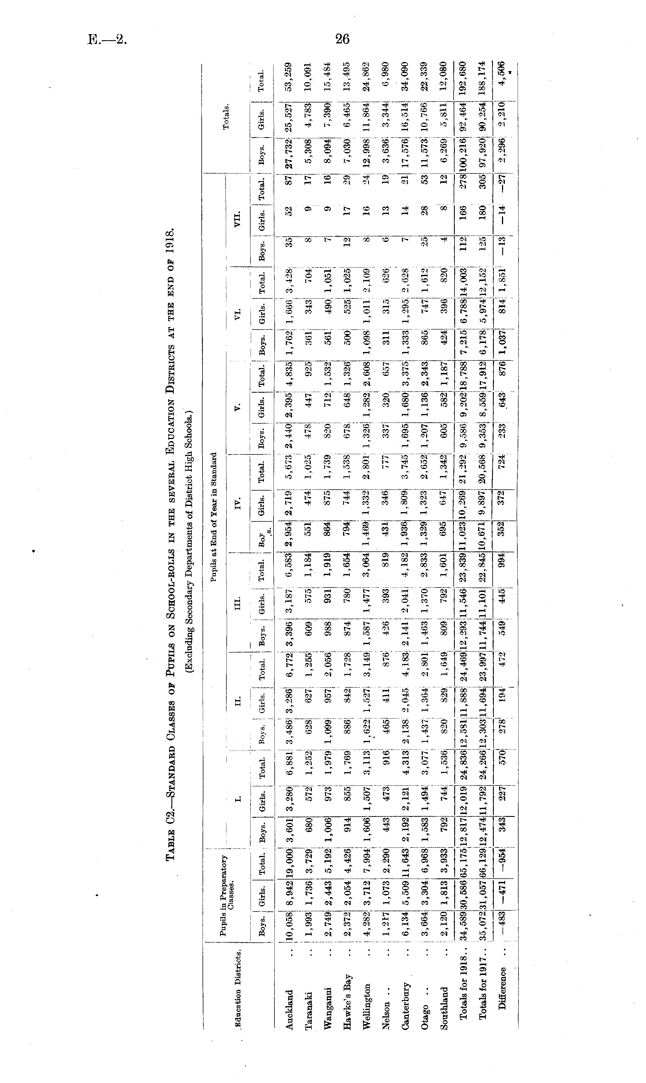 Table C2.—Standard Classes of Pupils on School-rolls in the several Education Districts at the end of 1918.