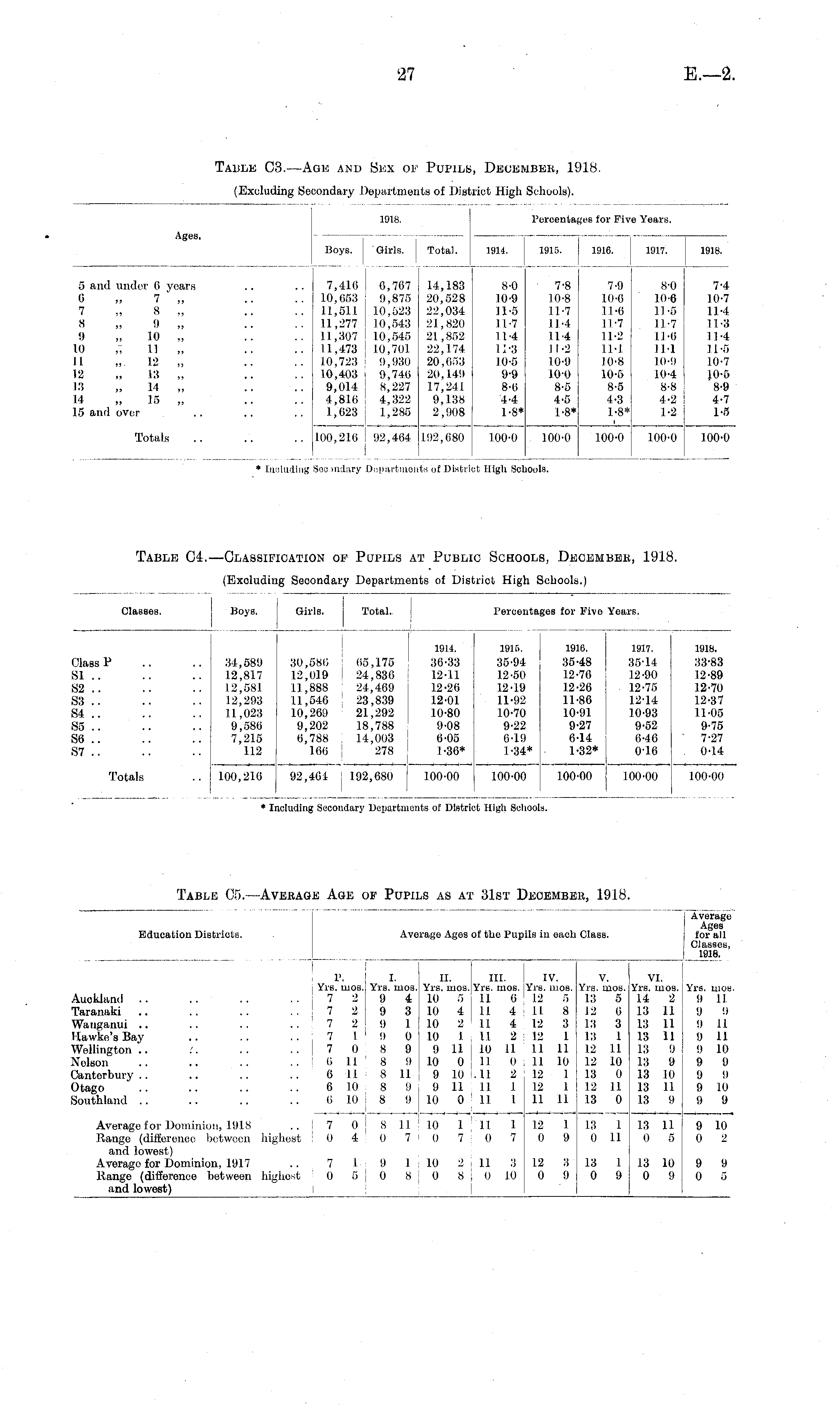 Table C3.—Age and Sex of Pupils, December, 1918,