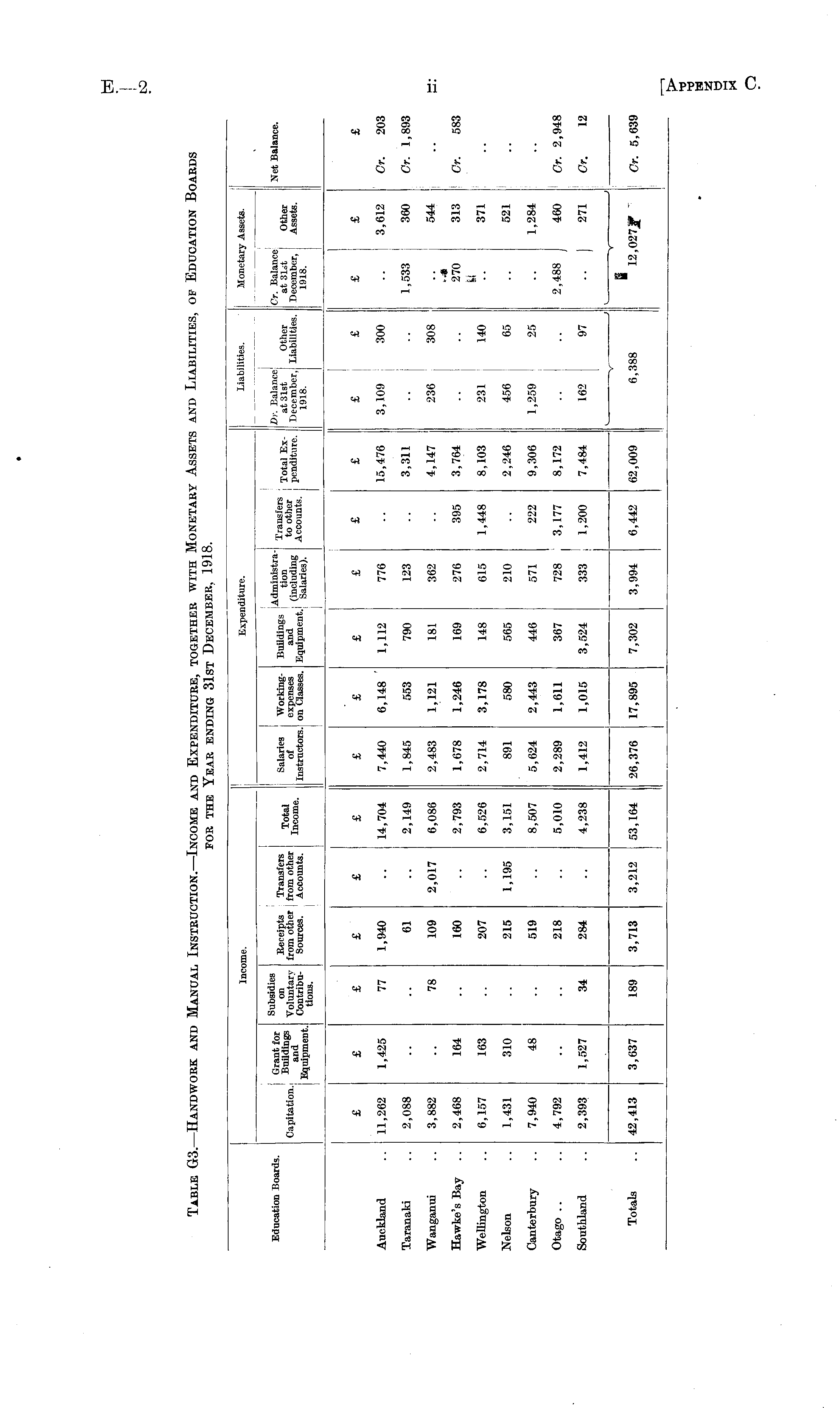 Table G3.—Handwork and Manual Instruction.— Income and Expenditure, together with Monetary Assets and Liabilities, of Education Boards for the Year ending 31st December, 1918.