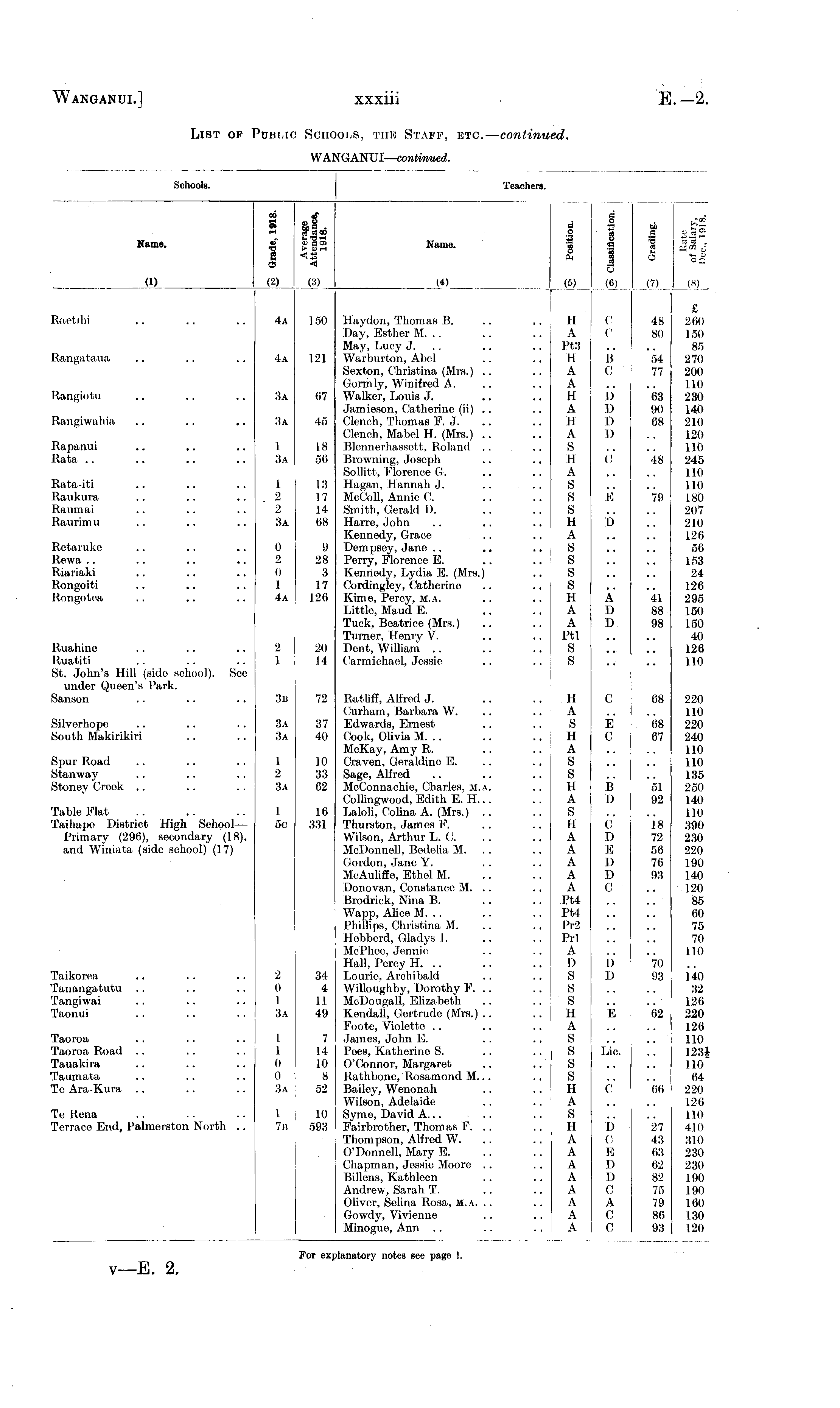 List of Public Schools, the Staff, etc. — continued. WANGANUI— continued.