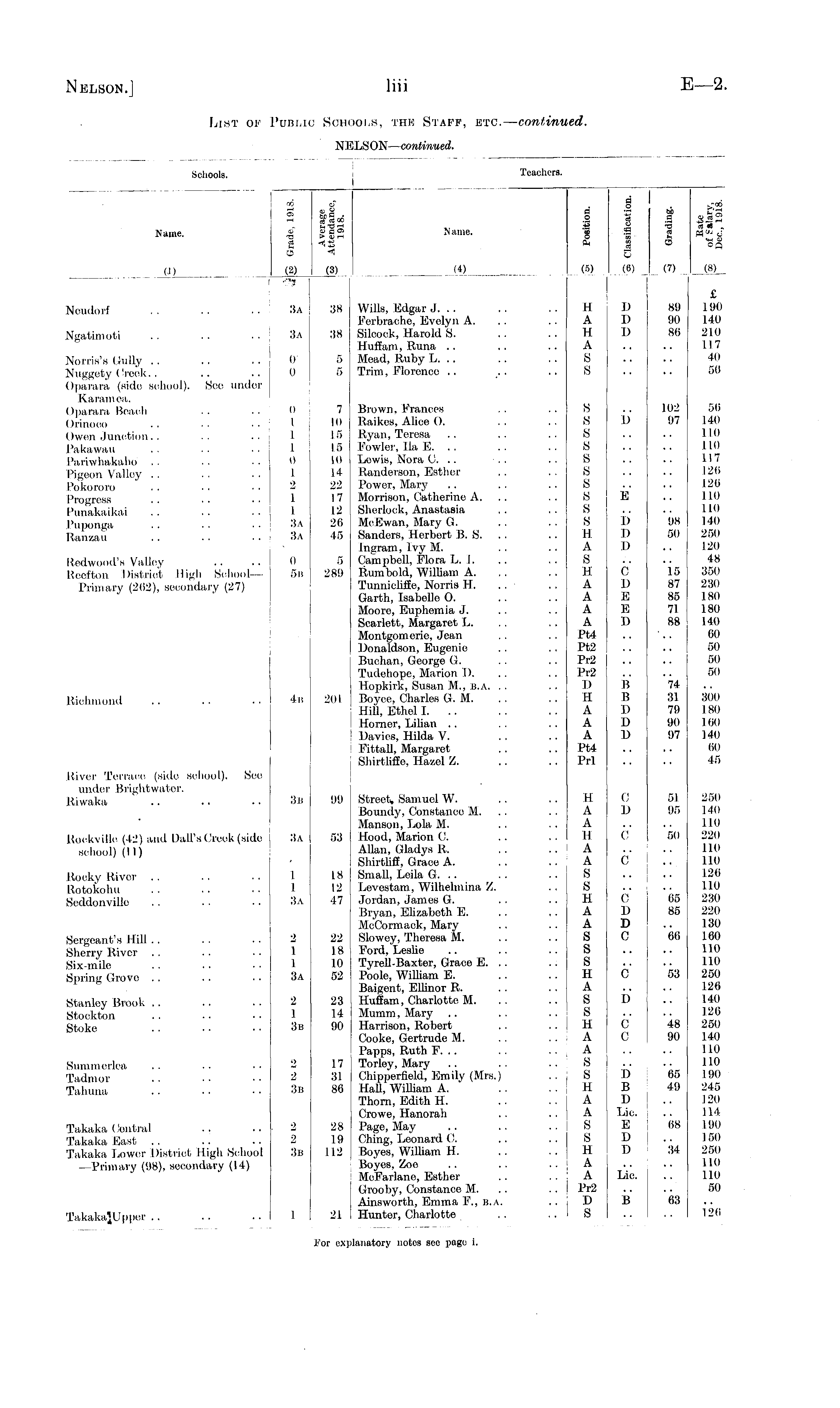 List of Public Schools, the Staff, etc. — continued. NELSON—continued.