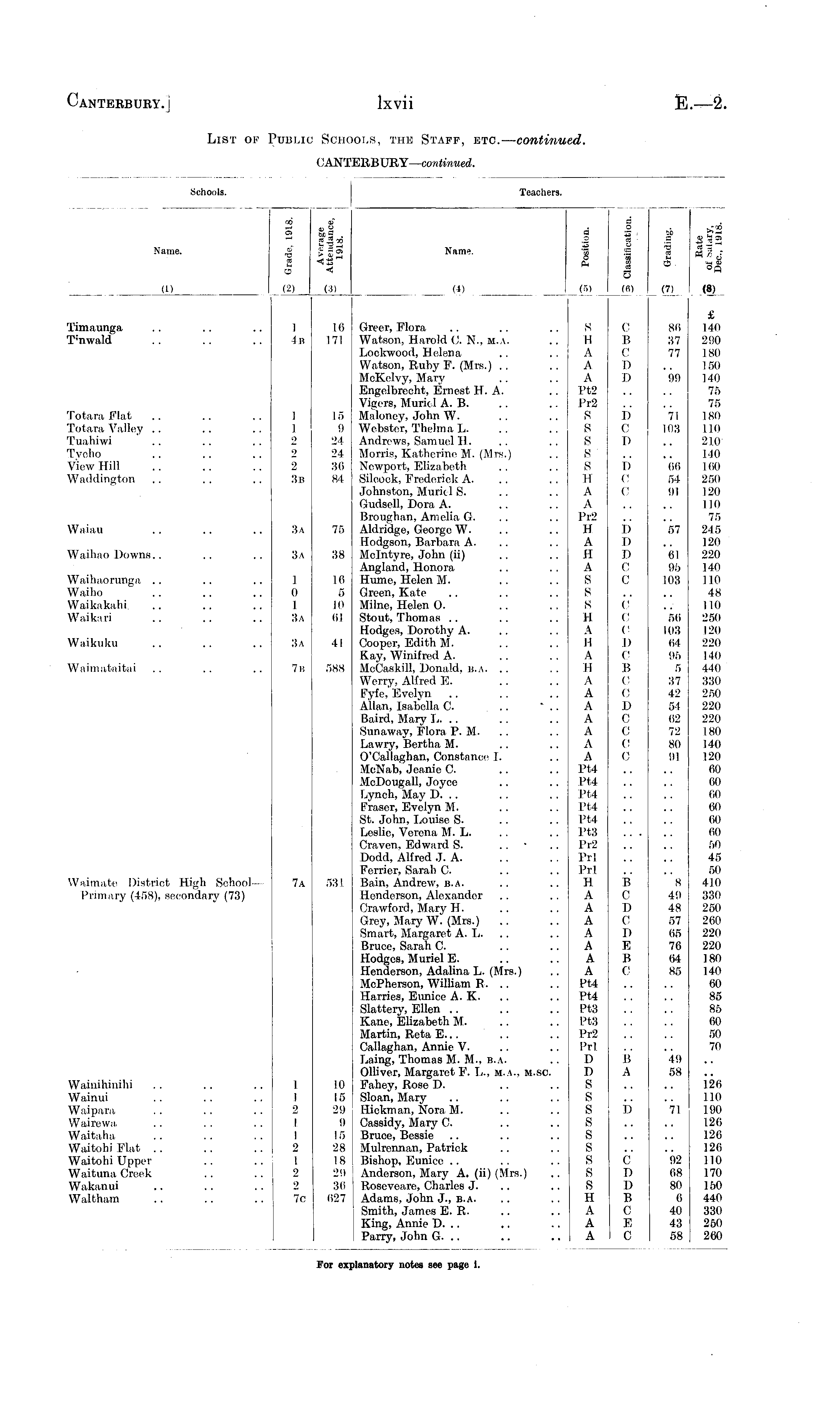 Schools. Teachers. Name. (O «s Cl Hi S2 (2) Hi Hi 2 SG S . £-__; t ?» — HI rH HiS "i (si) d Name. 'S o -. (4) (5) 0 . ,-QO % fl o 3 a air.: m fc. rH >- ej m rH r OJ (fi) _ (7L (§) Timaunga Tmwald Totara Flat Totara Valley .. Tuuhiwi Tvcho View Hill Waddington Wiiiau Wailiao Downs.. Waihaorungn .. Waiho Waikakahi. Waikari Waikuku Waimatiiitiii 1 4b 1 1 2 2 2 3b 3a 3a 1 0 1 3a 3a 7b 16 171 41 5SS 15 9 24 24 36 84 75 38 16 5 10 6.1 Greer, Flora .. .. .. S Watson, Harold C. N., m.a. .. H Lockwood, Helena .. .. A Watson, Ruby F. (Mrs.) . . . . A McKelvy, Mary .. .. A Engelbrecht, Ernest H. A. .. Pt2 Vigers, Muriel A. B. .. .. Pr2 Msilonev, John W. . . .. S Webster, Thehna L. . . .. S Andrews, Samuel II. .. .. S Morris, Katherine M. (Mrs.) .. S Newport, Elizabeth . . . . S Silcock, Frederick A. .. .. 11 Johnston, Muriel S. .. .. A Gudsell, Dora A. .. .. A Broughan, Amelia G. . . .. Pr2 Aldridge, George W. .. .. H Hodgson, Barbara A. .. .. A Mclntyre, John (ii) ., .. H Angland, Honora . . . . A Hume, Helen M. . . . . S Green, Kate .. .. .. S Milne, Helen O. .. .. S Stout, Thomas ., .. .. 11 Hodges, Dorothy A. .. .. A Cooper, Edith M. .. .. H Kay, Winifred A. .. . . A MeCaskill, Donald, b.a. .. . . H Werry, Alfred E. .. . . A Fyfe,' Evelyn .. .. .. A Allan, Isabella C. .. * .. A Baird, Mary L. .. .. .. A Sunaway, Flora P. M. .. .. A Lawry, Bertha M. .. .. A O'Callaghan, Constance 1. .. A MeNab, Jeanie C. .. .. Pt4 MeDougall, Joyce .. . . Pt4 Lynch, May D. .. . . . . Pt4 Fraser, Evelyn M. . . .. Pt4 St. John, Louise S. . . .. Pt4 Leslie, Verona M. L. . . .. Pt3 Craven, Edward S. .. • .. Pr2 Dodd, Alfred J. A. .. . . Prl Ferrier, Sarah C. .. .. Prl Bain, Andrew, b.a. .. .. H Henderson, Alexander .. . . A Crawford, Mary H. .. . . A Grey, Mary W. (Mrs.) ... .. A Smart, Margaret A. L. .. .. A Bruce, Sarah C. .. .. A Hodges, Muriel E. .. .. A Henderson, Adalina L. (Mrs.) .. A McPherson, William R. .. .. Pt4 Harries, Eunice A. K. .. . . Pt4 Slattery, Ellen .. .. .. Pt3 Kane, Elizabeth M. .. .. Pt3 Martin, Reta E... .. .. Pr2 Callaghan, Annie V. .. .. Prl Laing, Thomas M. M., b.a. .. D Olliver, Margaret F. L., m.a., m.sc. D Fahey, Rose D. .. .. S Sloan, Mary .. .. .. S Hickman, Nora M. .. .. S Cassidy, Mary C. .. .. S Bruce, Bessie .. .. .. S Mulrennan, Patrick .. . . S Bishop, Eunice .. . . .. S Anderson, Mary A. (ii) (Mrs.) .. S Roseveare, Charles J. .. S Adams, John J., b.a. .. .. H Smith, James E. R. .. .. A King, Annie D. .. .. .. A Parry, John G. .. .. .. A D I) D C C C C C D 0 B C c D C c c c £ C 86 140 B 37 290 C 77 J SO I) . . 150 I) 99 140 75 75 D 71 180 C 103 110 I) .. 210 140 I) 06 160 C 54 250 C 91 120 UO 75 D 57 245 I) .. 120 D 61 220 C 9.') 140 C 103 110 48 C .. 110 (I 56 250 C 103 120 D 64 220 O 95 140 B 5 440 C 37 380 0 42 250 D 5-1 220 C 02 220 C 72 180 0 80 140 C 91 120 60 60 60 60 60 60 50 45 50 B S 410 C 49 330 D 48 250 C 57 260 I) 65 220 E 76 220 B 64 180 C 85 140 60 85 85 60 50 70 Waitnate District High School Primary (458), secondary (73) 7a 531 B c D C I) E B C 8 49 48 57 65 76 64 85 B A B 49 49 58 Wainihinihi Wainui Waipara Wairewa Waitaha Waitohi Flat .. Waitohi Upper Waituna Creek Wakanui Waltham 1 1 2 I 1 2 1 2 2 7c 10 15 29 9 15 28 18 29 36 627 b c D D B C E C A 58 126 no D 71 190 126 126 126 C 92 110 D 68 170 D 80 160 B 6 440 C 40 330 E 43 260 C 58 260 71 92 68 80 6 40 43 58 For e: ilanatory notes see page i.