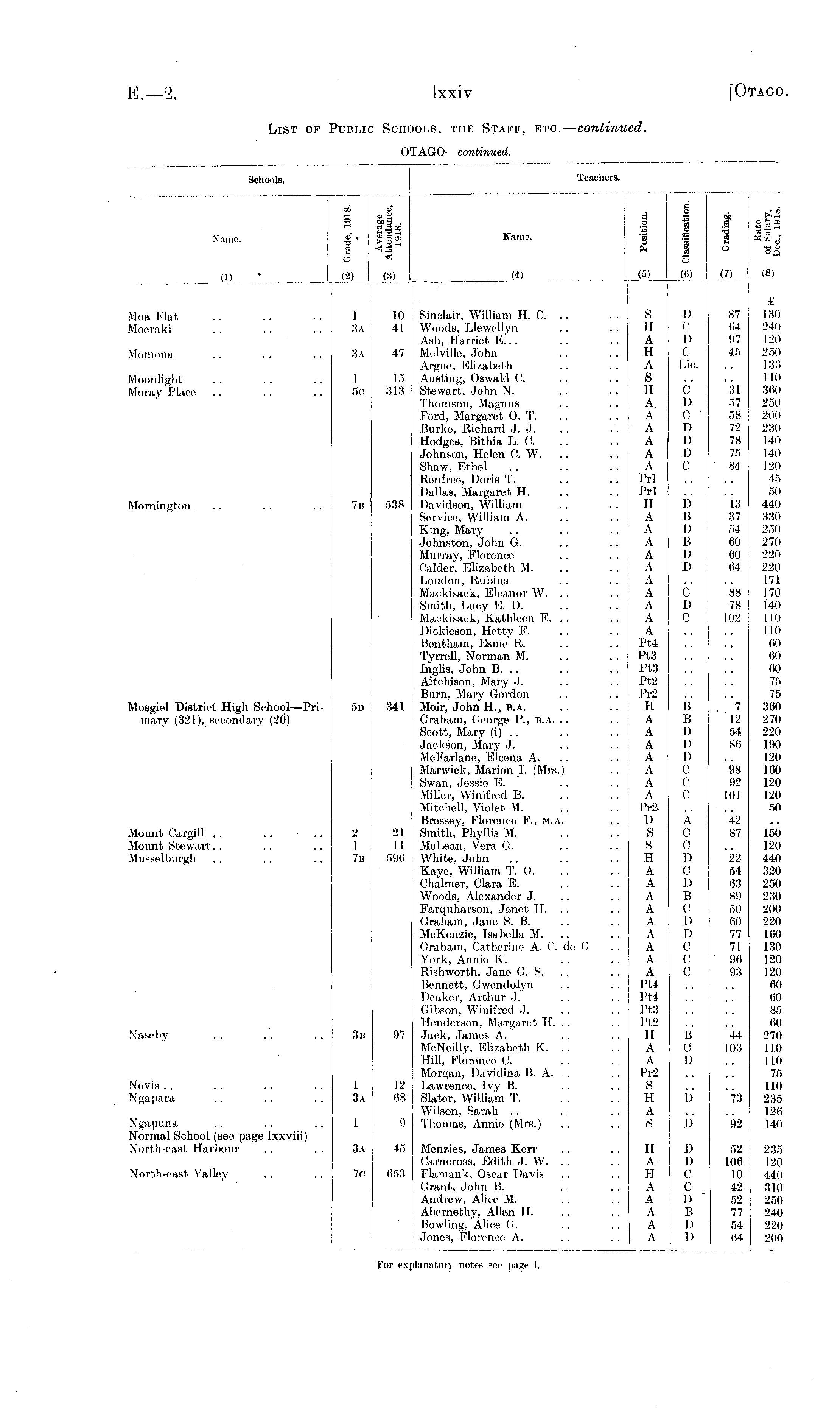 List of Public Schools, the Staff, etc. — continued. OTAGO — continued.
