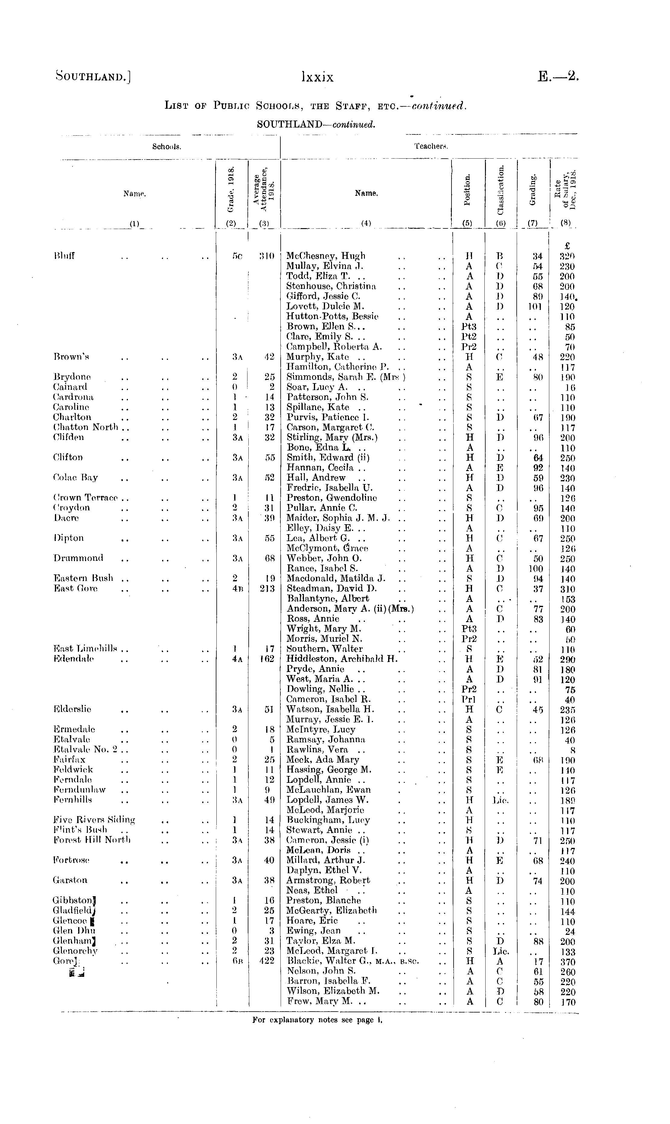 Schools. Teachers-. Name. OO Hi -- Hi ° r- M a ■ E-o2 A £ a s -a > hi „ a -H.S fc. - r. O Hi (2) (si) I a o Name. '_> o ill O) (__) _ S O Q I Oil __" H a | s S.o> 5 i . is 2 ««o' 0) .i_ (7) I. (8) Bluff Brown's Brydone Oninard Cardrona Caroline Charlton Chatton North Clifden Clifton Colae Bay Crown Terrace (Iroydon D.icre Dipton Drummond Eastern Bush East Gore lOast Limehills Edendale 5c 310 3a 2 0 I 1 2 1 3 a 3a 3a I 2 3 a 3 a 3 a 2 h-. 42 25 2 14 13 32 17 32 55 52 II 31 39 55 68 19 213 MeChesney, Hugh .. .. II Mullay, Elvina j. .. .. A Todd," Eliza T. .. . . .. A Stenhouse, Christina . . .. A Gilford, Jessie C. . . . . A Lovett, Duleie M. . . .. A 11 utton-Potts, Bessie .. .. A Brown, Ellen S... .. .. Pt3 Clare, Emily S. .. .. .. PiCampbell, Roberta A: ., .. Pi-2 Murphy, Kate .. . . .. II Hamilton, Catherine P. . . . . A Simmonds, Sarah E. (Mrs ) . . S Soar, Lucy A. .. .. . . S Patterson, John S. . . . . S S|iillane, Kate .. .. * .. S Purvis, Patience I. . . .. S Carson, Margaret C. .. .. S Stirling, Mary (Mrs.) .. .. H Bone, Edna L. .. . . . . A Smith, Edward (ii) .. .. II Hannan, Cecila .. .. .. A Hall, Andrew .. . . .. 11 Fredric. Isabella U. . . .. A Preston, Gwendoline .. .. S 1-liar, Annie C. .. .. S Maider, Sophia J. M. J. .. .. II Elley, Daisy E. .. .. .. A Lea, Albert G. .. . . .. II MeClymont, Grace .. . . A Webber, John O. .. .. II Ranee, Isabel S. . . . . A Macdonald, Matilda J. . . S Steadman, David 1). . . . . II Balluntyno, Albert .. .. A Anderson. Mary A. (ii)(Mrs.) .. A Ross, Annie .. .. . . A Wright, Mary M. . . . . Pt.3 Morris. Muriel N. .. . . Pr2 Southern, Walter . . .. S Hiddleston, Archibald IT. .. II Pryde, Annie .. .. .. A West, Maria A. .. .. . . A Dowling, Nellie .. . . . . Pr2 Cameron, Isabel R. . . . . Prl Watson, Isabella H. . , . . 11 Murray, Jessie E.I. . . .. A Me in tyre, Lucy . . .. S Ramsay, Johanna . . . . S Rawlins, Vera .. . . .. S Meek, Ada Mary . . .. S Hassing, George M. .. .. S Lopdell, Annie .. ..... S MoLauchlan, Ewnn . .. S Lopdell, James W. . .. If McLeod, Marjorie . , . . A Buckingham, Lucy .. .. II Stewart, Annie .. .. .. S Cameron, Jessie (i) .. .. 11 McLean, Doris . . . . . . A Millard, Arthur.I. .. .. 11 Diiplyn, Ethel V. .. .. A Armstrong, Robert .. . . H Neas, Ethel • . '. .. .. A Preston, Blanche .. .. S McGcarty, Elizabeth .. .. S Hoare, Eric .. . . .. S Ewing, Jean .. .. .. S Taylor, Elza M. .. .. S McLeod, Margaret I. .. . . S Blackie, Walter G., m.a., b.sc .. II Nelson, John S. .. . . A Barron, Isabella F. .. .. A Wilson, Elizabeth M. .. .. A Frew, Mary M. .. . . . . A 1? c I) D I) I) C E b i) D E I) I) fl" D c c D D C C D £ 34 320 54 230 55 200 68 200 89 140. 101 120 110 85 50 70 48 220 117 SO 190 16 110 110 67 19(1 117 96 Jill) 110 64 250 92 140 59 230 96 140 126 95 140 69 200 110 67 250 126 50 250 100 140 94 U0 37 310 153 77 200 83 140 60 50 110 62 290 81 180 91 120 75 40 45 235 126 126 40 8 68 190 I 10 117 126 189 117 UO 117 71 250 117 08 240 III) 74 200 110 110 144 111) 24 88 200 133 17 370 61 260 55 220 58 220 80 J 70 1 4a 17 162 E I) D lOlderslio C 3 a 51 lOrmedale Etalvale Etalvale No. 2 .. Fairfax Feldwick Ferndale Fertidiiiilsiw Fernhills 2 0 0 2 1 1 1 3 a IS 5 1 25 I I 12 9 49 10 10 Lie. Five Rivers Siding Flint's Bush Forest Hill North 1 1 3 a 14 14 38 b 71 Fortrose 3 a 40 E 7s8 Garston 3a 38 i) 74 GibbstonJ Gladfleldi Glenooe J Glen Dhn Glonham] Glenorchy Gore], IJ 1 2 1 0 2 2 (in 16 25 17 3 31 23 422 D Lie. A C c I) c 88 17 61 55 68 80 Por ex; slunatory notes see page i.