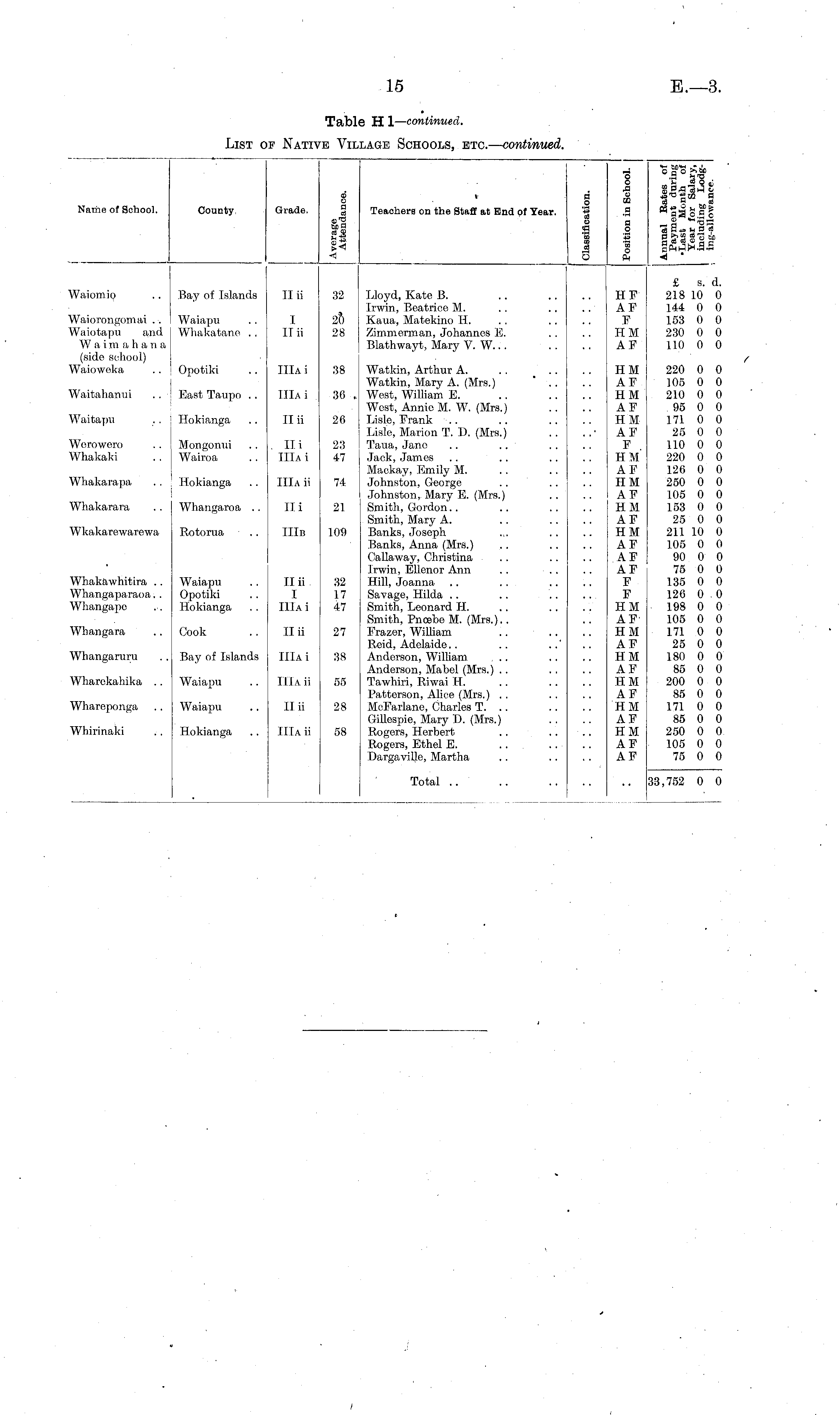 Table H1— continued. List of Native Village Schools, etc. — continued.