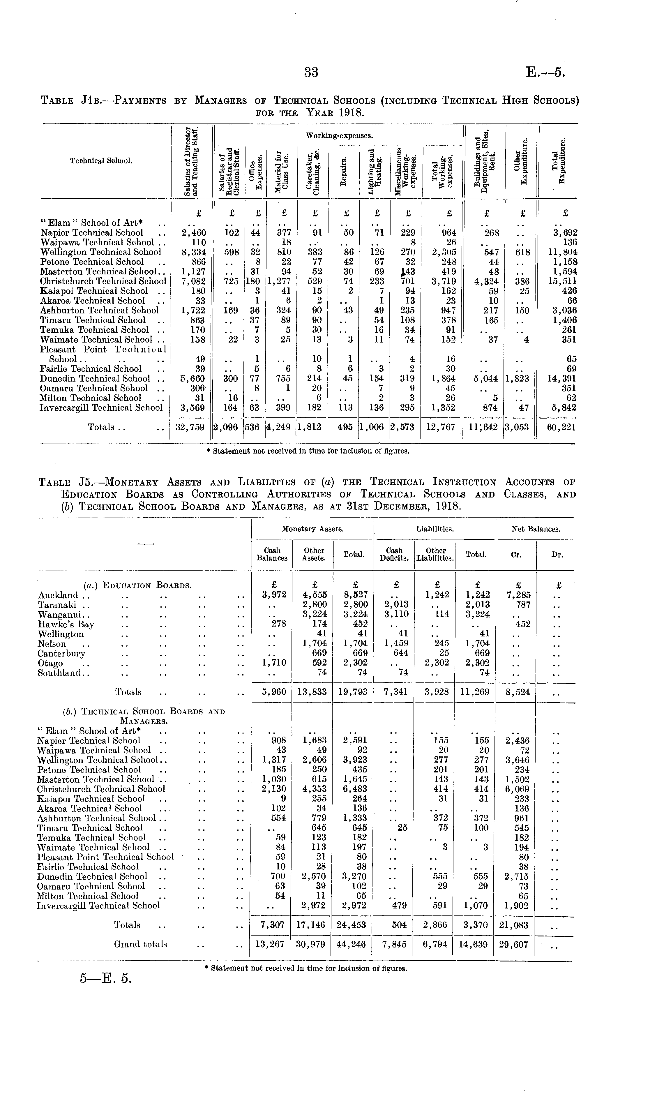 Table J4b. —Payments by Managers of Technical Schools (including Technical High Schools) for the Year 1918.