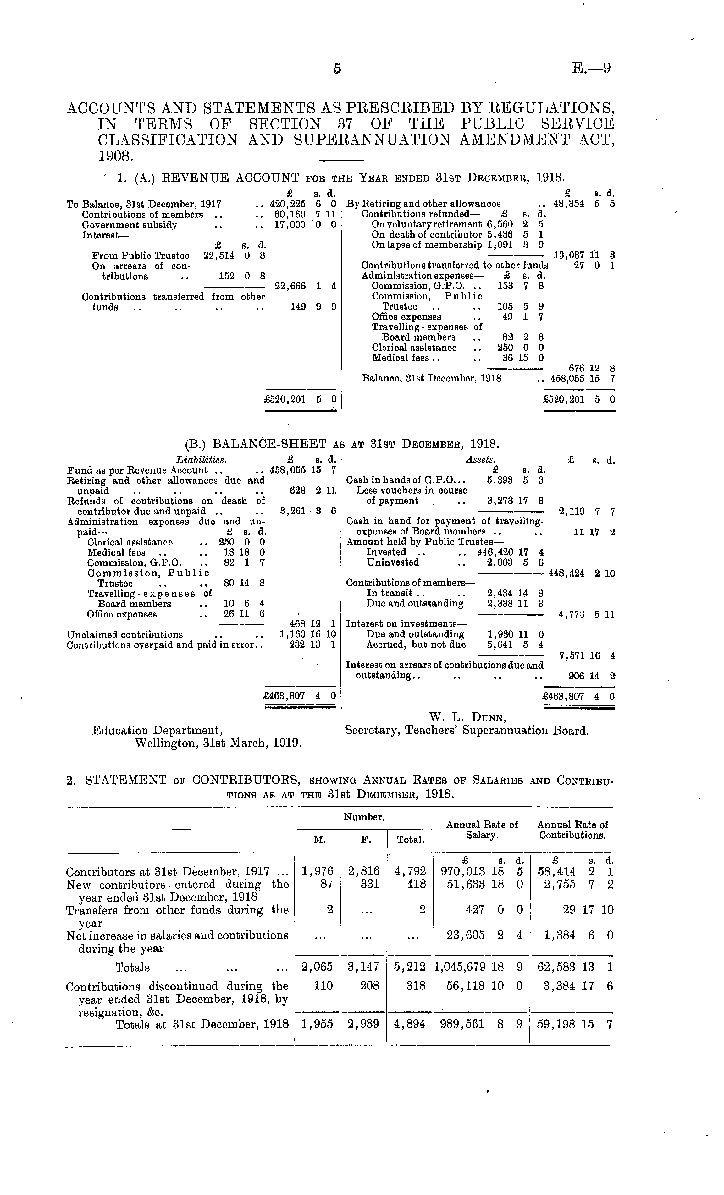 ACCOUNTS AND STATEMENTS AS PRESCRIBED BY REGULATIONS, IN TERMS OF SECTION 37 OP THE PUBLIC SERVICE CLASSIFICATION AND SUPERANNUATION AMENDMENT ACT, 1908.