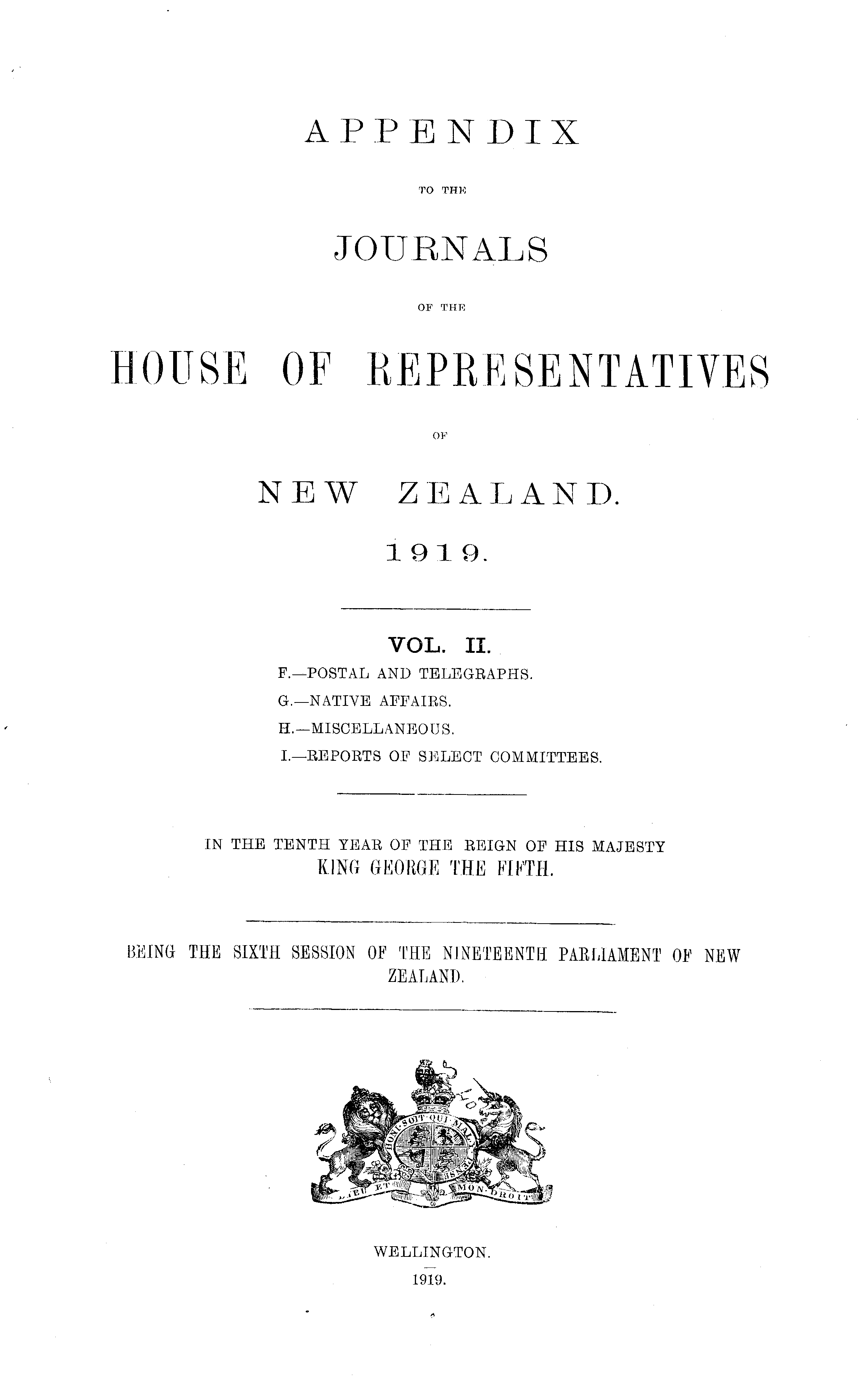 APPENDIX TO THE JOURNALS OF THE HOUSE OF REPRESENTATIVES OF NEW ZEALAND. 1919.