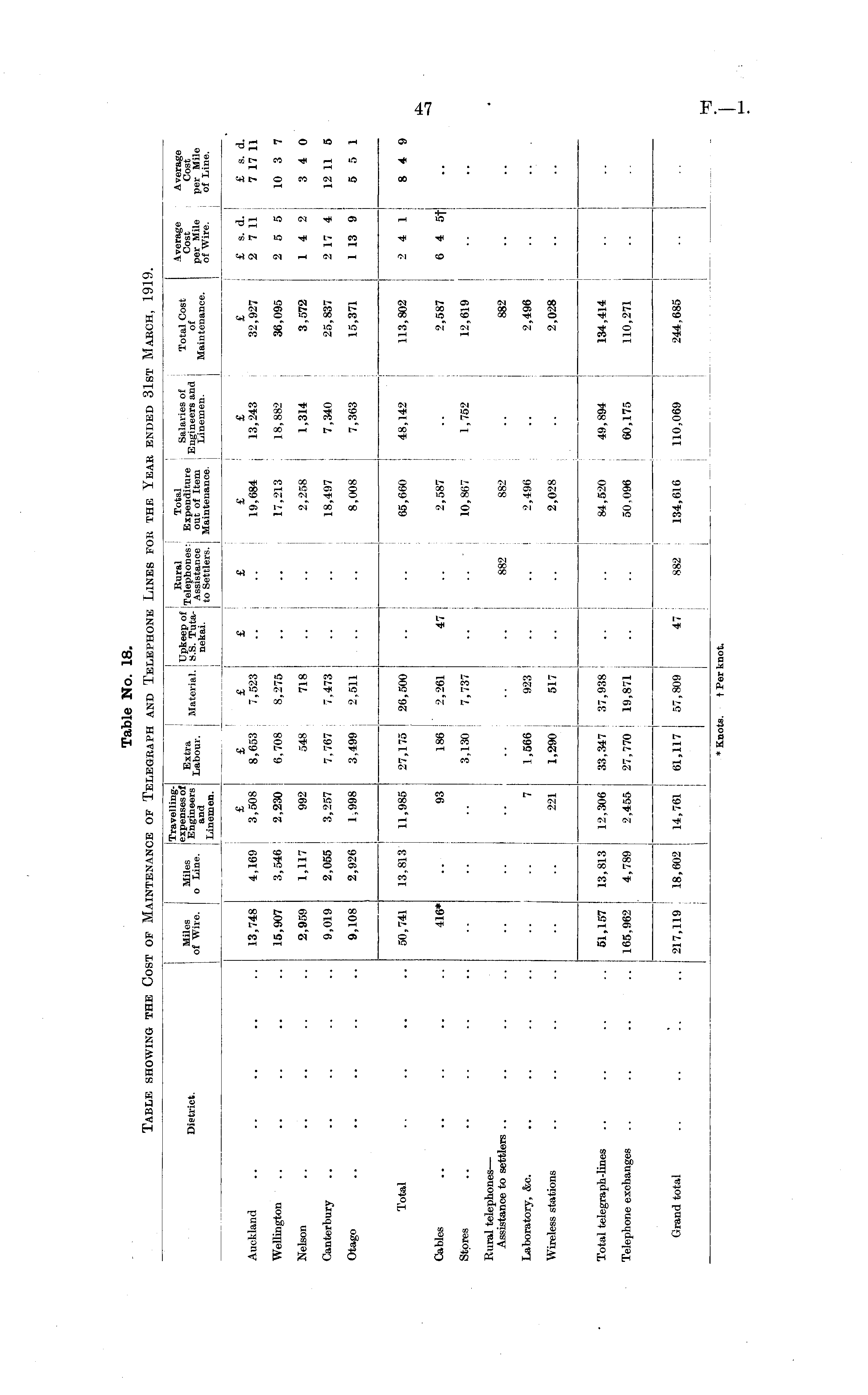 District. TravellingMiles Miles e^^? s^° f of Wire. o Line. En | 1 n a d eers Linemen. --. j Materia,. «S<£ •£-= *££- E nekai - to Settlers. Maintenance. Lmemen. Total Cnst Average Average 1 otal cost Cost Oost Maintenance per Mile per Mile Maintenance. of wire of Line Auckland 13,748 4,169 £ 3,508 £ 8,653 £ 7,523 £ £ £ 19,684 17,213 £ 13,243 18,882 i : £ 32,927 36,095 £ s. d. ' 2 7 11 £ s. d. 7 17 11 Wellington 15,907 3,546 2,230 6,708 8,275 2 5 5! 10 3 7 Nelson Canterbury 2,959 9,019 1,117 2,055 992 3,257 548 7,767 718 7,473 i 2,258 18,497 8,008 1,314 7,340 7,363 3,572 25,837 15,371 14 2 2 17 4 1 13 9 3 4 0 12 11 5 5 5 1 Otago 9,108 2,926 1,998 3,499 2,511 Total 50,741 13,813 11,985 27,175 j 26,500 186 j 2,261 47 882 65,660 2,587 10,867 882 48,142 1,752 113,802 2,587 12,619 882 2 4 1 6 4 5f 8 4 Cables 416* 93 Stores 3,130 | 7,737 Rural telephones — Assistance to settlers .. Laboratory, &c. 7 I i 1,566 923 i 2,496 2,496 Wireless stations 221 1,290 517 j 2,028 2,028 Total telegraph-lines 33,347 ! 37,938 84,520 49,894 134,414 51,157 13,813 12,306 Telephone exchanges 165,962 4,789 2,455 27,770 ! 19,871 50,096 60,175 110,271 Grand total 217,119 18,602 14,761 61,117 | 57,809 47 882 ■ 134,616 110,069 244,685 * Knots. t Per knot.