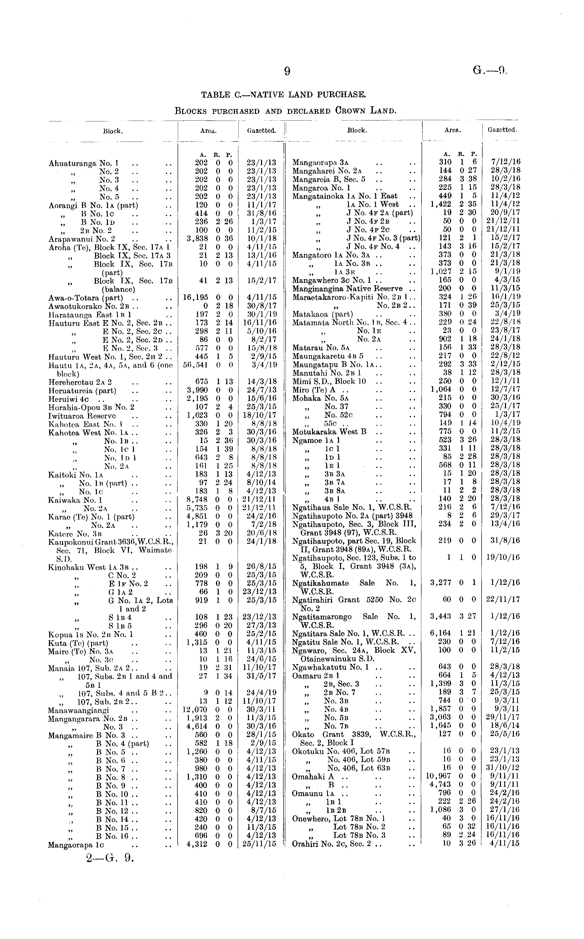 TABLE C.—NATIVE LAND PURCHASE. Blocks purchased and declared Crown Land.