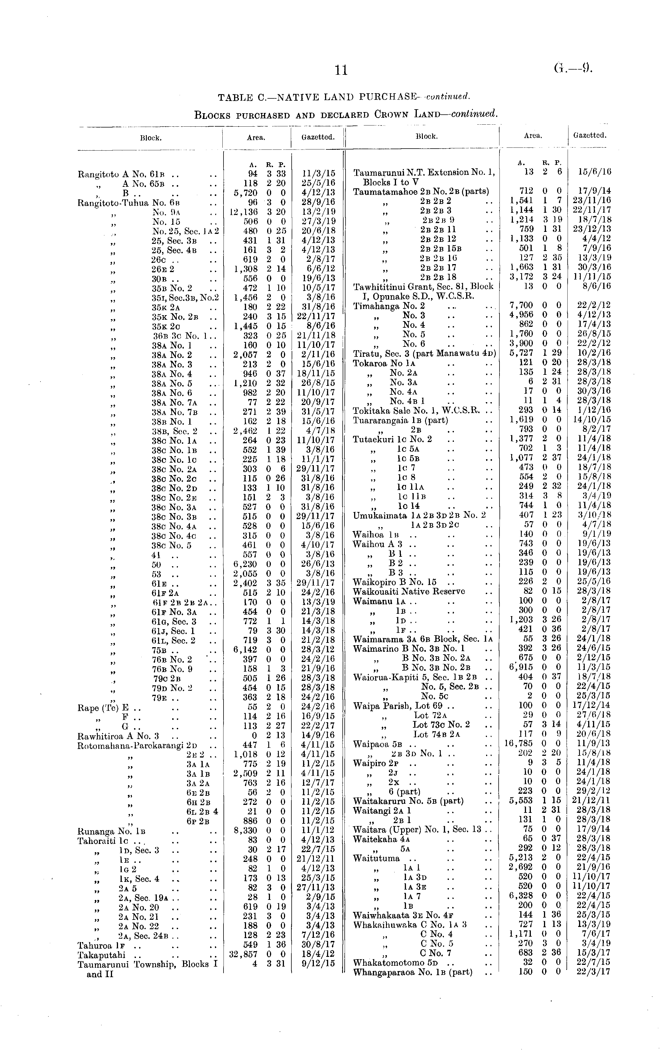 TABLE C.-NATIVE LAND PURCHASE- continued. Blocks purchased and declared Crown Land— continued.