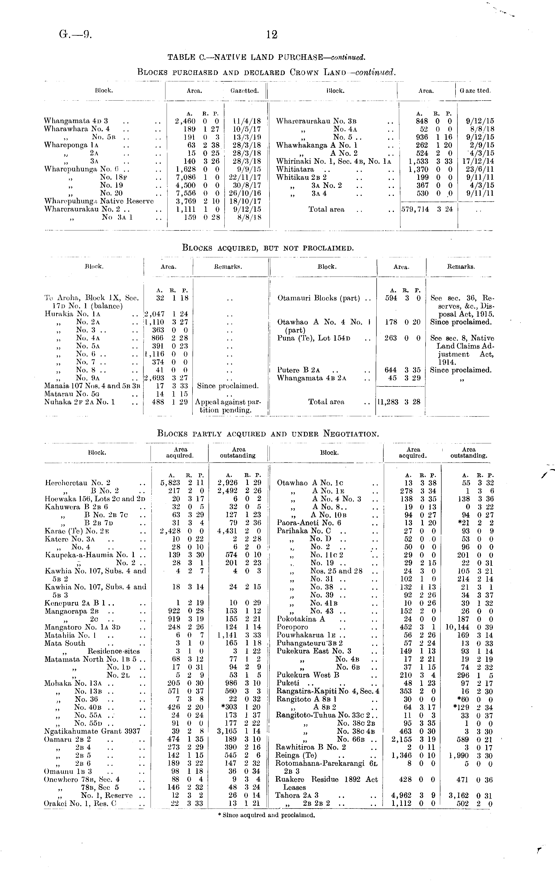 TABLE C—NATIVE LAND PURCHASE— continued. Blocks purchased and declared Crown Land -continued.