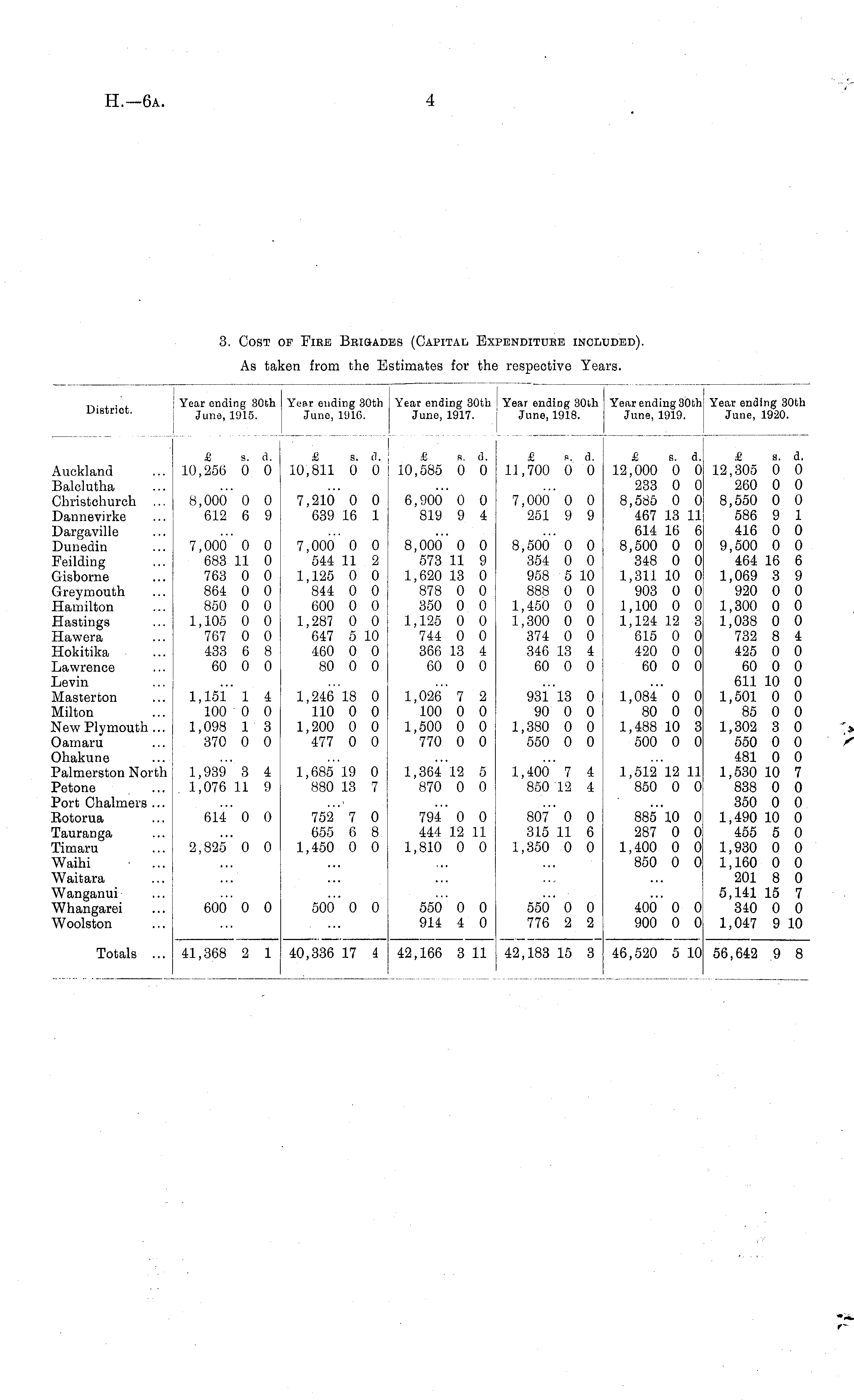District. Year ending 30th Year ending 30th Juno, 1918. June, 1916. 1 Year ending 30th Year ending 30th June, 1917. June, 1918. Year ending 30th June, 1919. Year ending 30th June, 1920. Auckland Balolutha Christchurch Dannevirke Dargaville Dunedin Feilding Gisborne Grey mouth Hamilton Hastings Hawera Hokitika Lawrence Levin £ s. d. £ s. (1. 10,256 0 0 10,811 0 0 8,000 0 0 7,210 0 0 612 6 9 639 16 1 7,000 0 0 7,000 0 0 683 11 0 544 11 2 763 0 0 1,125 0 0 864 0 0 844 0 0 850 0 0 600 0 0 1,105 0 0 1,287 0 0 767 0 0 647 5 10 433 6 8 460 0 0 60 0 0 80 0 0 1,151 1 4 1,246 18 0 100 0 0 110 0 0 1,098 1 3 1,200 0 0 370 0 0 477 0 0 £ s. (1. £ p. d. 10,585 0 0 11,700 0 0 6,900 0 0 7,000 0 0 819 9 4 251 9 9 8,000 0 0 8,500 0 0 573 11 9 354 0 0 1,620 13 0 958 5 10 878 0 0 888 0 0 350 0 0 1,450 0 0 1,125 0 0 1,300 0 0 744 0 0 374 0 0 366 13 4 346 13 4 60 0 0 60 0 0 1,026 7 2 931 13 0 100 0 0 90 0 0 1,500 0 0 1,380 0 0 770 0 0 550 0 0 £ B. d. 12,000 0 0 233 0 0 8,585 0 0 467 13 11 614 16 6 8,500 0 0 348 0 0 1,811 10 0 903 0 0 1,100 0 0 1,124 12 3 615 0 0 420 0 0 60 0 0 1,084 0 0 80 0 0 1,488 10 3 500 0 0 a 8. a. 12,305 0 0 260 0 0 8,550 0 0 586 9 1 416 0 0 9.500 0 0 464 16 6 1,069 3 9 920 0 0 1,300 0 0 1,038 0 0 732 8 4 425 0 0 60 0 0 611 10 0 1.501 0 0 85 0 0 1,302 3 0 550 0 0 481 0 0 1,530 10 7 838 0 0 350 0 0 1,490 10 0 455 5 0 1,930 0 0 1,160 0 0 201 8 0 5,141 15 7 340 0 0 1,047 9 10 Masterton Milton New Plymouth ... Oamaru Ohakune Palmerston North Petone Port Chalmers ... Eotorua 1,939' 3 4 1,685 19 0 1,076 11 9 880 13 7 1,364 12 5 l,400" 7 4 870 0 0 850 12 4 1,512 12 11 850 0 0 Tauranga Timaru Waihi Waitara 614 0 0 752 7 0 655 6 8 2,825 0 0 1,450 0 0 794 0 0 807 0 0 444 12 11 315 11 6 1,810 0 0 1,350 0 0 885 10 0 287 0 0 1,400 0 0 850 0 0 Wanganui Whangarei Woolston 600 0 0 500" 0 0 550 0 0 550 0 0 914 4 0 776 2 2 400' 0 0 900 0 0 Totals ... 41,368 2 1 1 40,336 17 i i 42,166 3 11 42,183 15 3 46,520 5 10 56,642 9 8