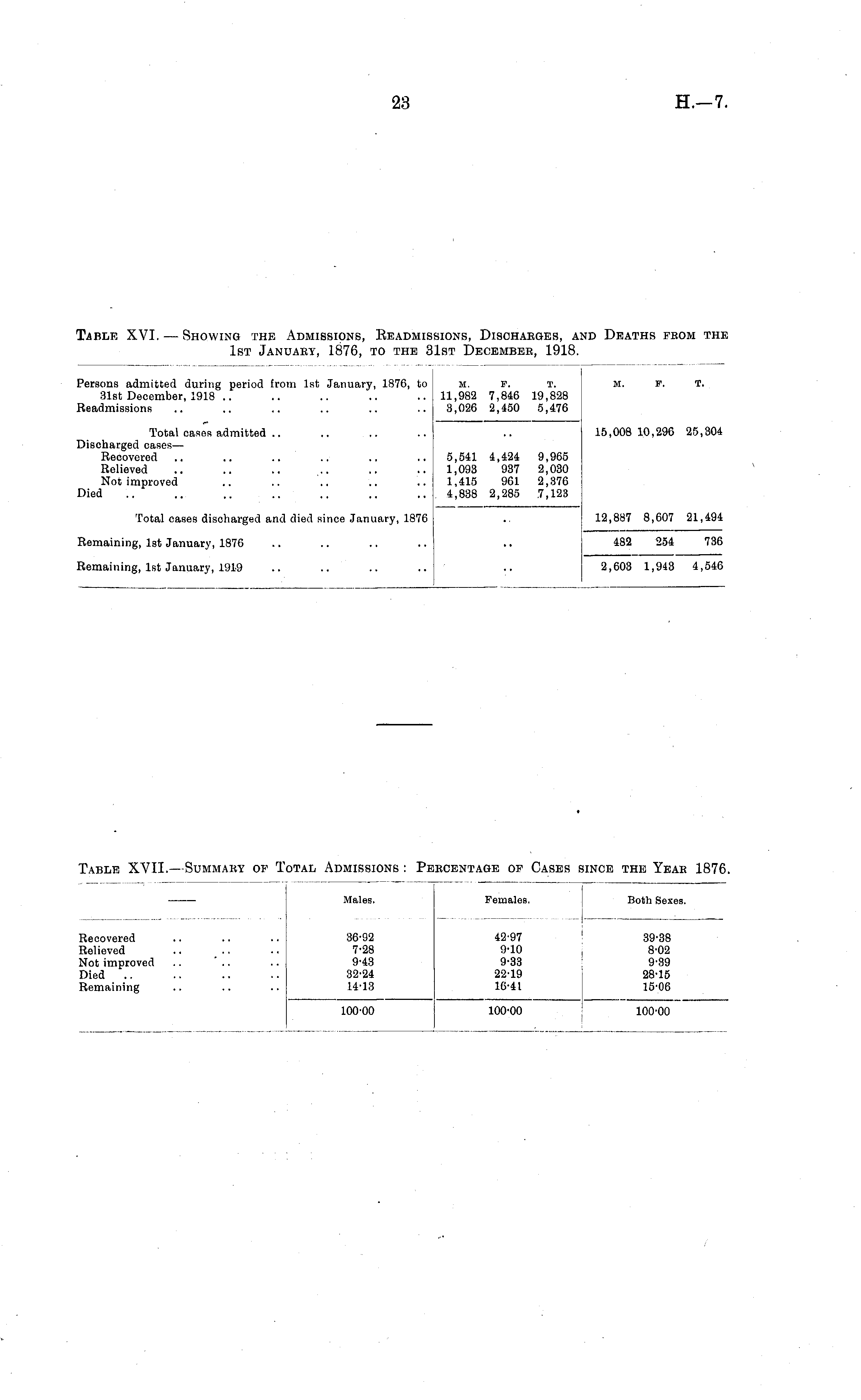 Table XVI. —Showing the Admissions, Readmissions, Discharges, and Deaths from the 1st January, 1876, to the 31st December, 1918.