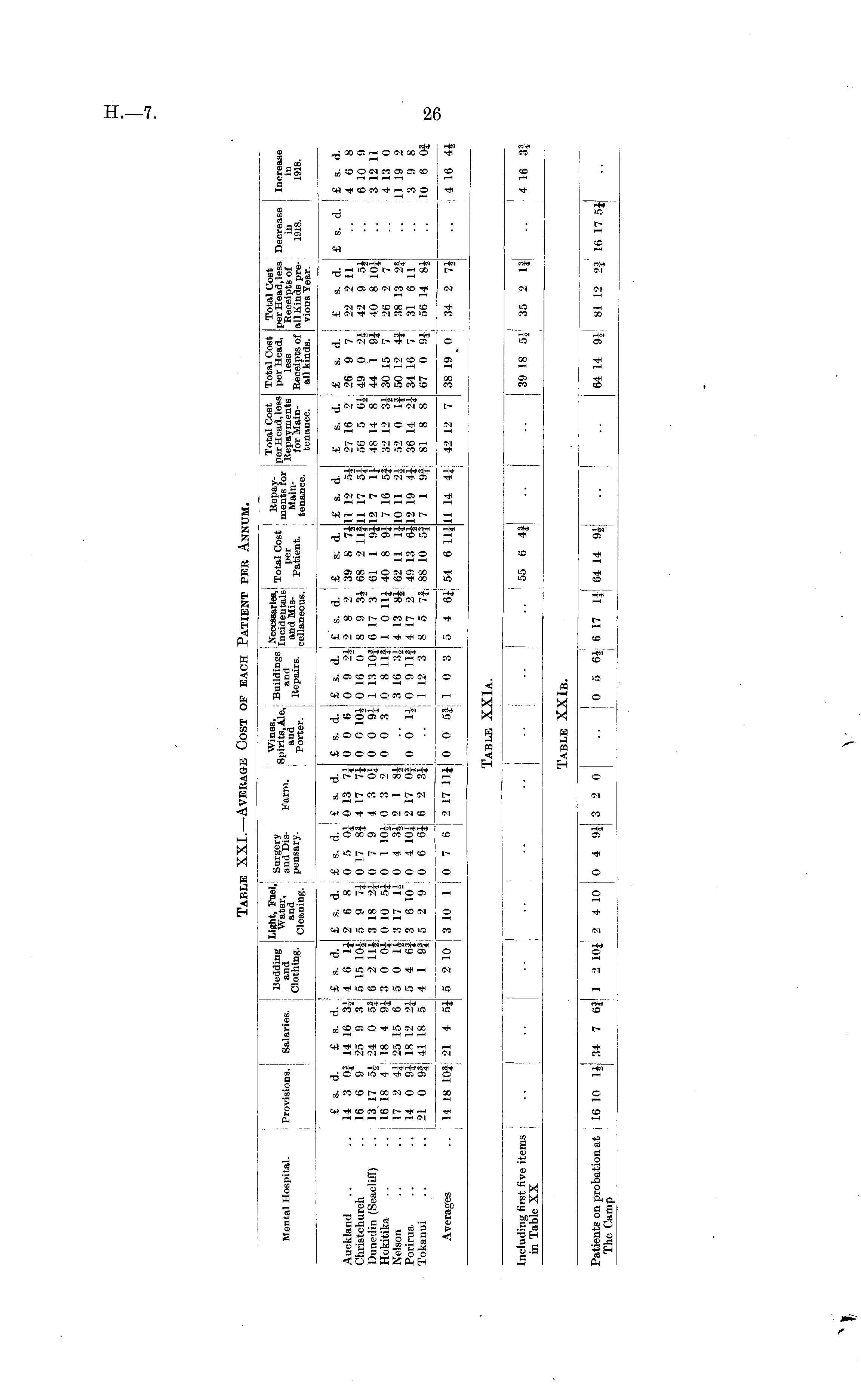 Mental Hospital. Provisions. Salaries. Bedding L ®*' ti I Ue1 ' Surgery and »rS and DisClothing. Cle^? ng pensary. Earn, sSile. Total Cost .gfc pjgjgs Porter. **»-■ ™**- _e"»cV £„*££• tenatiee. Total Cost per Head, less Receipts of all kinds. Total Cost per Head, less Decrease Increase Receipts of in in all Kinds pre- 1918. 1918. vious Year. Auckland Christchurch Dunedin (Seacliff) Hokitika Nelson Porirua Tokanui £ s. d. £ s. d. .. 14 3 0| 14 16 3J .. 16 6 9 25 9 3 .. 13 17 5J 24 0 5f .. 16 18 4 18 4 94, .. 17 2 4£J 25 15 6 .. 14 0 9i 18 12 2J .. 21 0 9| 41 18 5 £ s. d. £ s. d. £ s. d. £ s. d. 4 6 1J 2 6 8 0 5 Oi 0 13 7J 5 15 10* 5 9 74. 0 17 8} 4 17 7J 6 2 ll| 3 18 21 0 7 9 4 3 OJ 3 0 OJ 0 10 5i 0 1 10* 0 3 2 5 0 11 3 17 HO 4 3i! 2 1 81 5 4 6} 3 6 10 0 4 101 2 17 Of 4 115 2. 0 6 61 6 2 34, £ s. d. £ s. d. i 0 0 6 0 9 2* 0 0 10* 0 16 0" 0 0 9i 1 13 lOf 0 0 3 0 8 llf 3 16 3i 0 0 H 0 9 llf 1 12 3 £ s. d. £ s. d. 2 8 2 39 8 71 8 9 3*. 68 2 llf 6 17 3 i 61 1 9i 1 0 Hi 40 8 9i 4 13 8|: 62 11 1J 4 17 2 49 13 6* 8 5 7f 88 10 5f £ s. d. £ s. d. 11 12 5J 27 16 2 11 17 5i 56 5 6£; 12 7 If 48 14 8 7 16 5f 32 12 3A. 10 11 2* 52 0 if 12 19 4| 36 14 2J 7 1 9f 81 8 8 £ s. d. ! 26 9 7 49 0 2* 44 1 9i( 30 15 7 ! 50 12 4f 34 16 7 ! 67 0 9J] £ s. d. 22 2 11 42 9 51 40 8 10J 26 2 7 38 13 2f 31 6 11 56 14 81 £ s. d. £ s. d. 4 6 8 6 10 9 3 12 11 4 13 0 11 19 2 3 9 8 10 6 Of Averages .. 14 18 10} 21 4 5-1 5 2 10 I 3 10 1 0 7 6 ! 2 17 11J 0 0 5} 1 0 3 5 4 6i 54 6 11J 11 14 4J 42 12 7 38 19 0 ; 34 2 7lj 4 16 4J ~ Table XXIa. Including first five items : in Table XX i 55 6 4} 39 18 5* 35 2 If 4 16 3f Table XXIb. Patients on probation at 10 10 1*1 34 7 6f' 1 The Camp | I 2 10i 2 4 10 0 4 9J 3 2 0 I 0 5 61, 6 17 HI 64 14 9J 64 14 9J 81 12 2f 16 17 5* 1