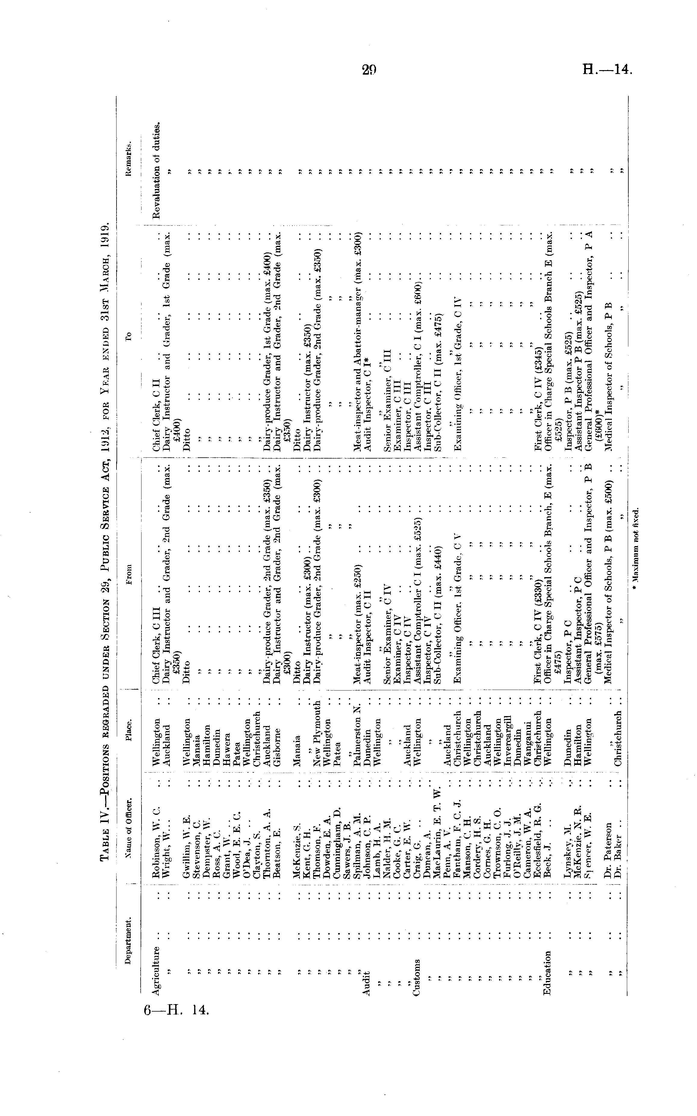 Table IV.—Positions regraded under Section 29, Public Service Act, 1912, for Year ended 31st March, 1919.