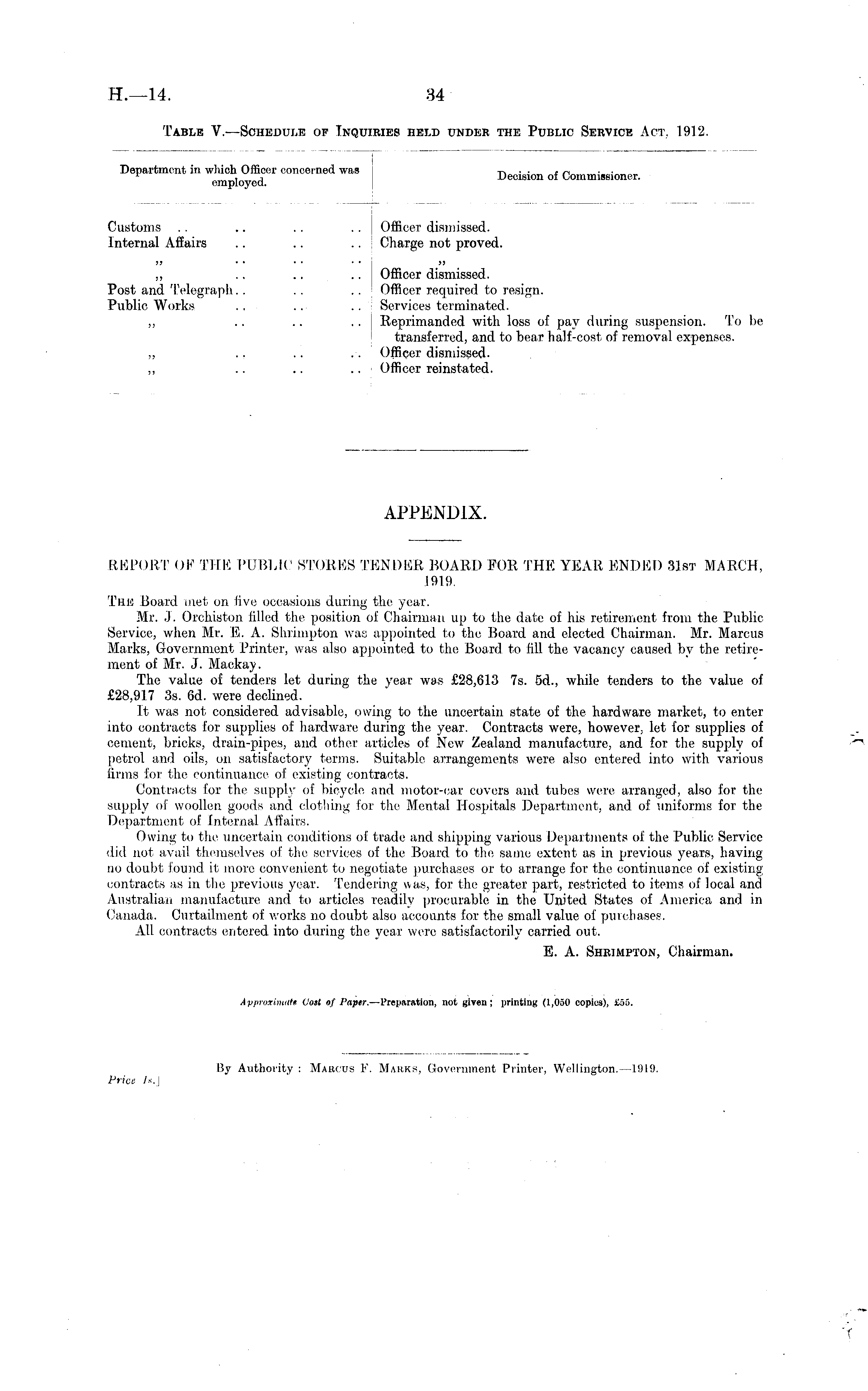 Table V.—Schedule of Inquiries held under the Public Service Act, 1912.