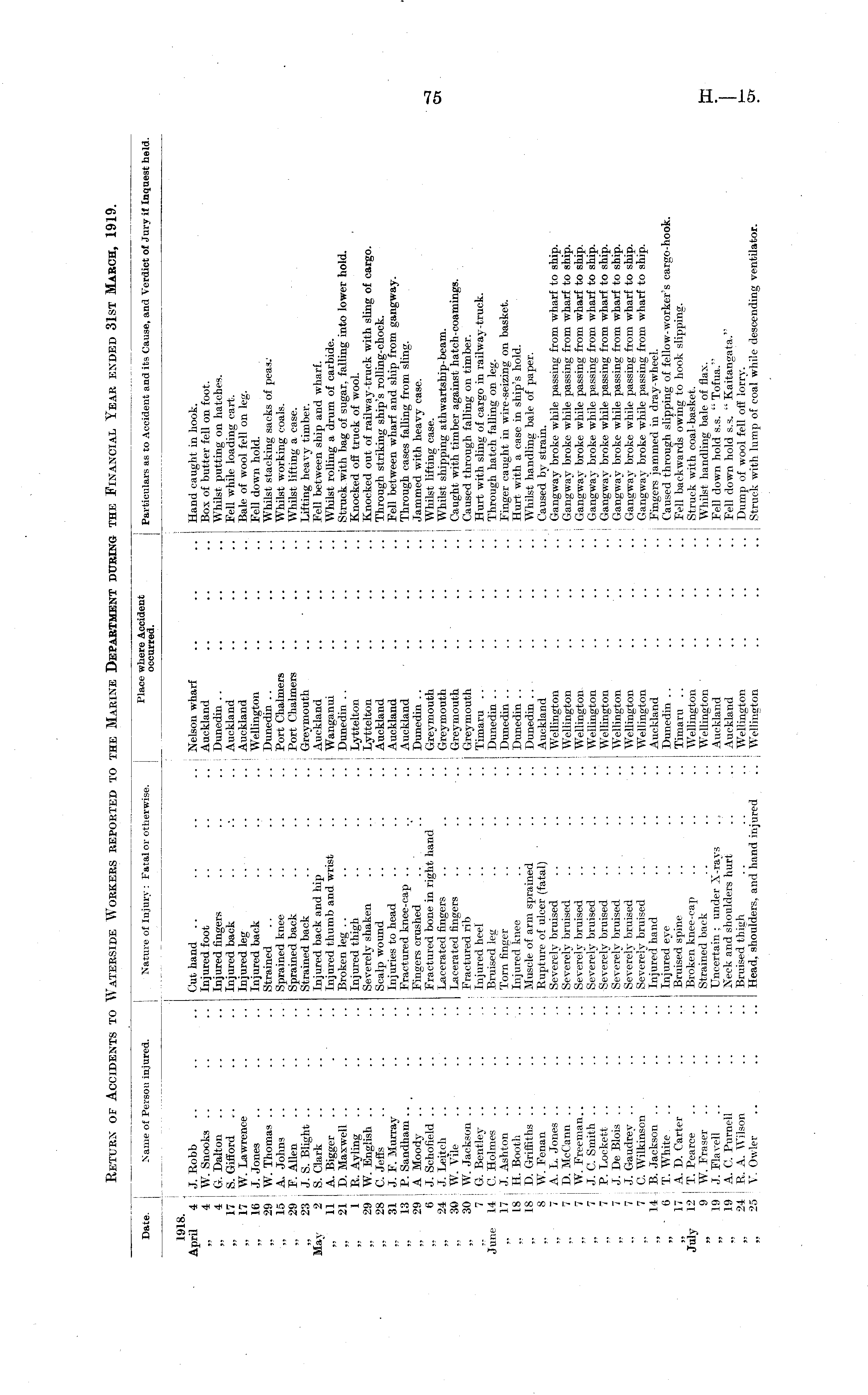 Return of Accidents to Waterside Workers reported to the Marine Department during the Financial Year ended 31st March, 1919.