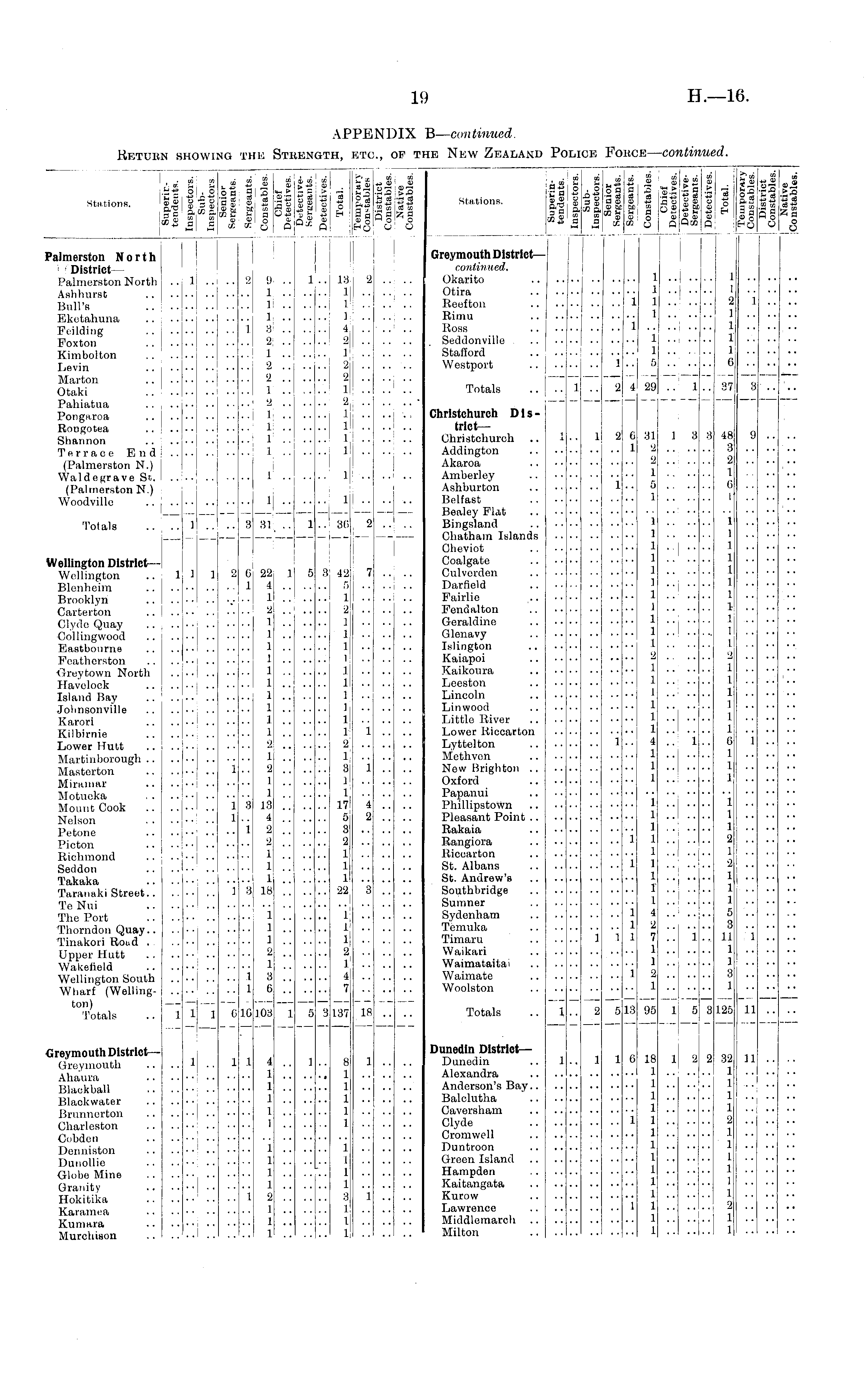 APPENDIX B-continued. Return showing the Strength, etc., of the New Zealand Police Force-continued.