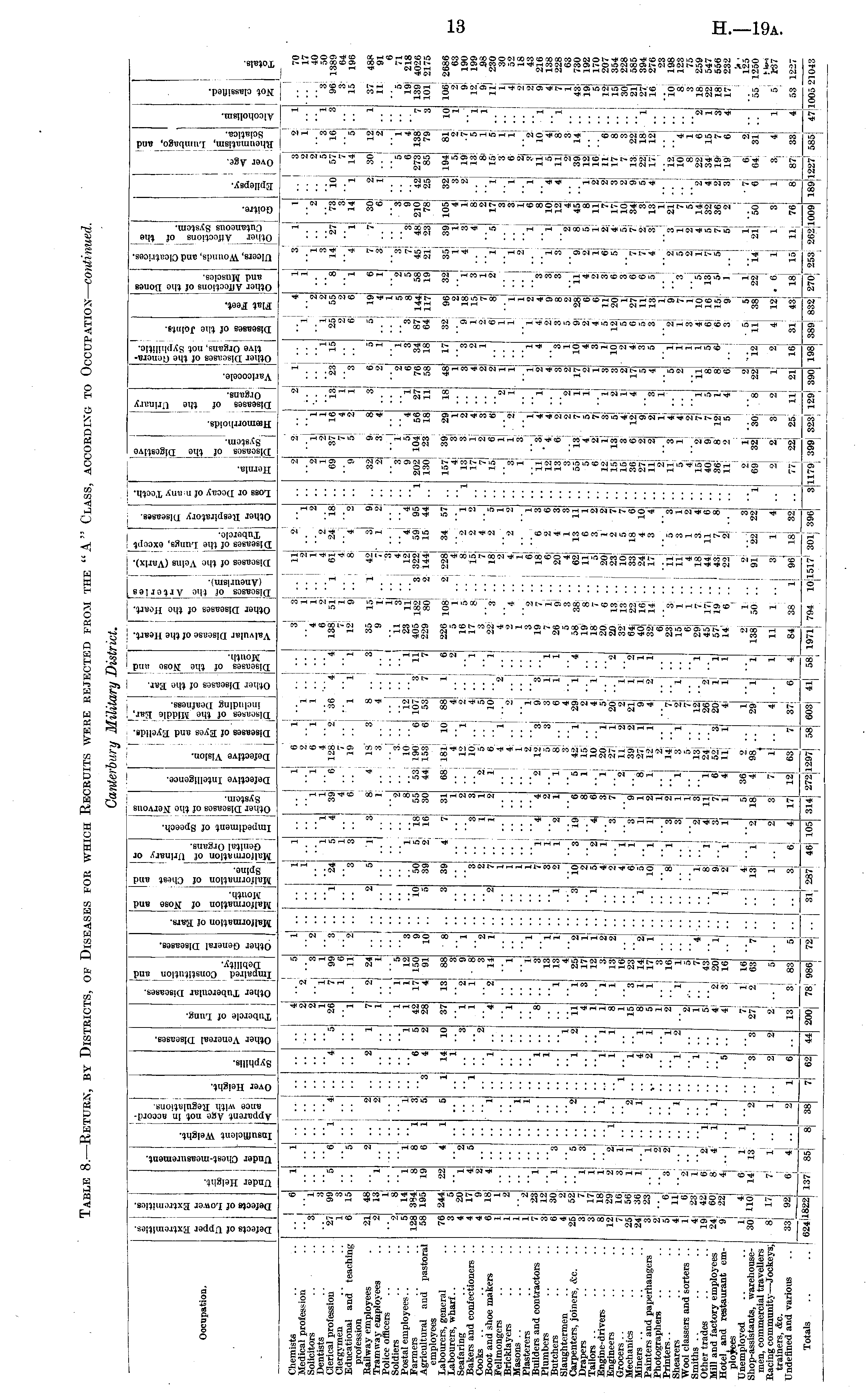 Table 8.—Return, by Districts, of Diseases for which Recruits were rejected from the "A" Class, according to Occu pation— continued. Canterbury Military District.