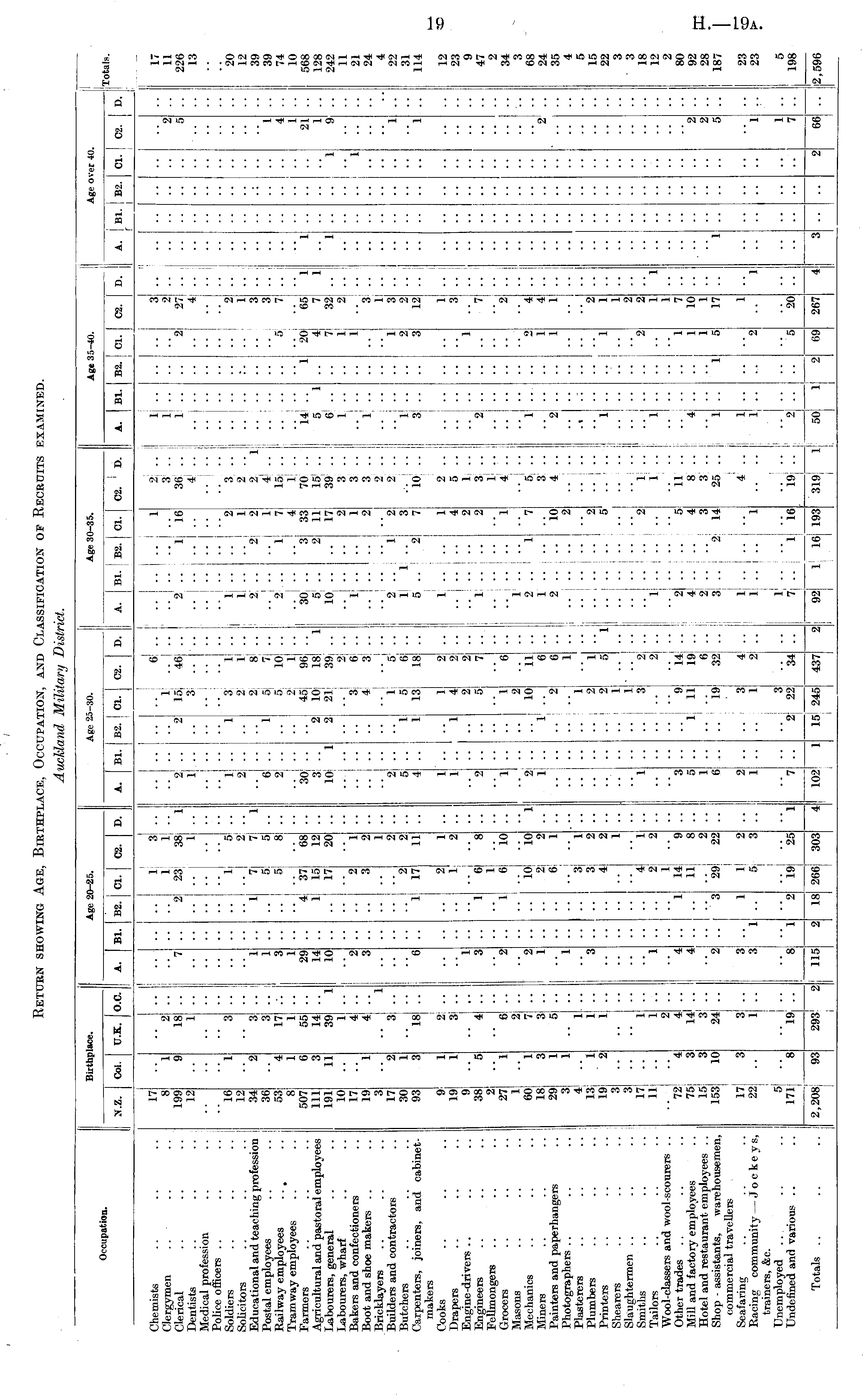Return showing Age, Birthplace, Occupation, and Classification of Recruits examined. Auckland Military District.